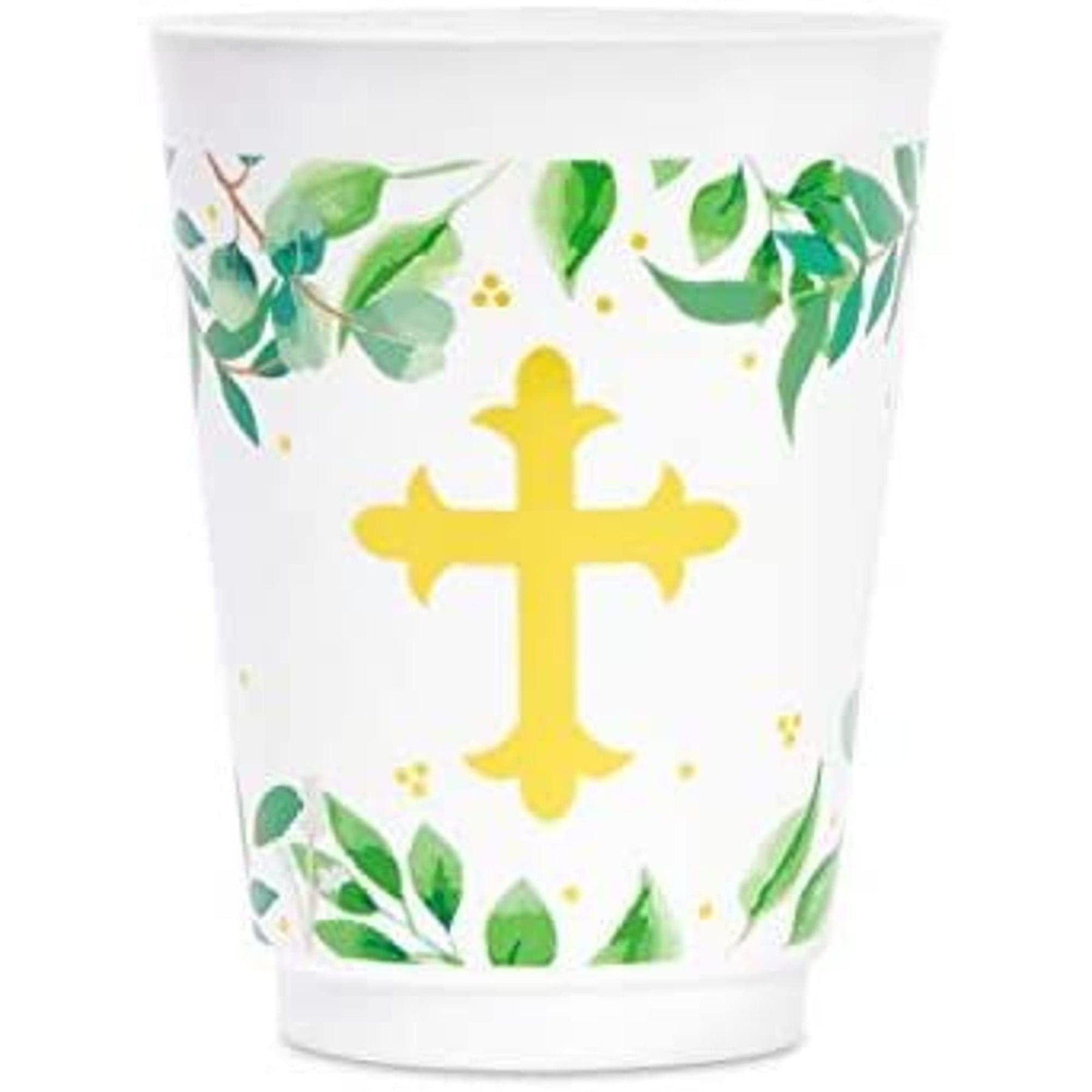16 Oz Plastic Religious Tumbler Cups Baptism Party Supplies (16