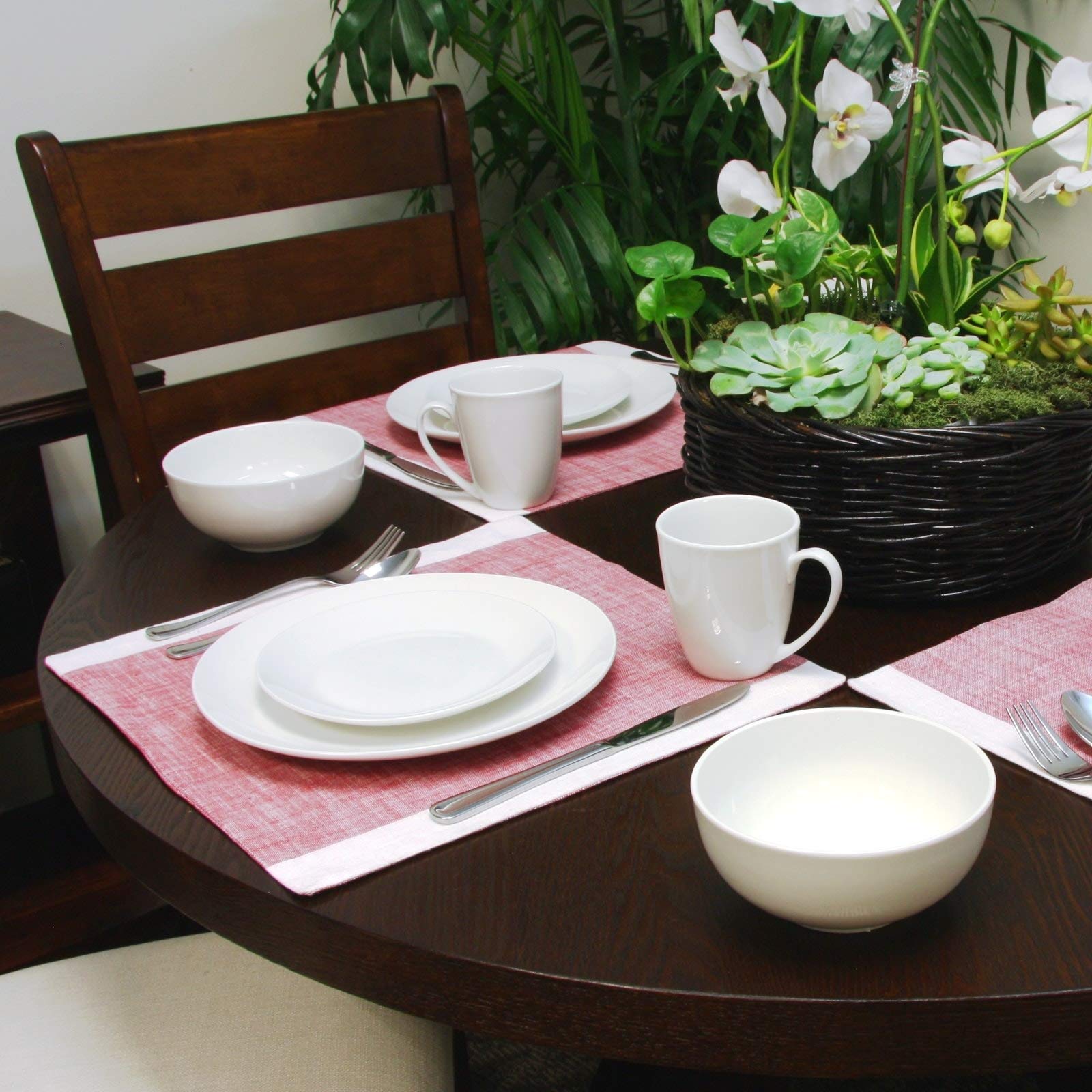 16 Piece Dinnerware Set in White Solid Casual Round Ceramic
