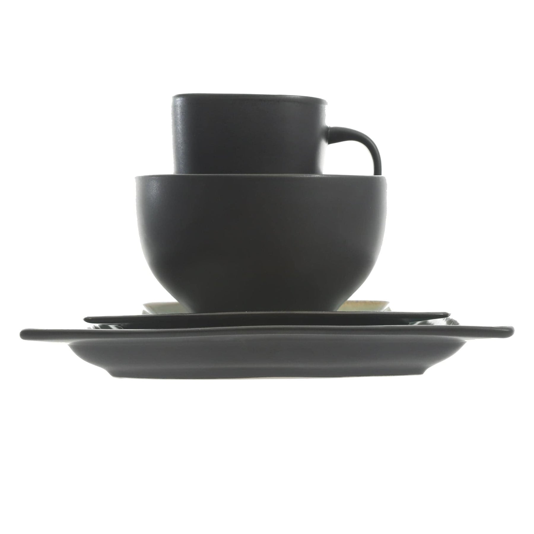16-piece Dinnerware Set Turquoise Solid Modern Contemporary Round Stoneware 16