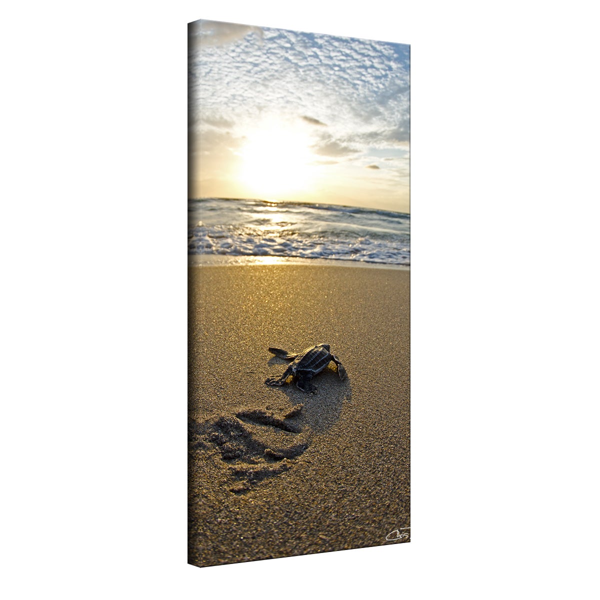 Deck out your lounge with this stunning photography artwork from Christopher Doherty. Showing a cute baby turtle on its quest to reach the sea, this art piece offers an endearing accent piece for every season. Owing to its gallery-wrapped design, this canvas wall art reflects the contemporary allure of a frameless presentation and sleek design.