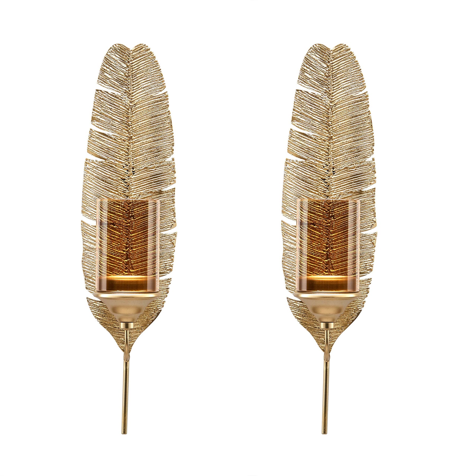 17 inches Gold Feather Wall Candle Sconces (Set of 2)