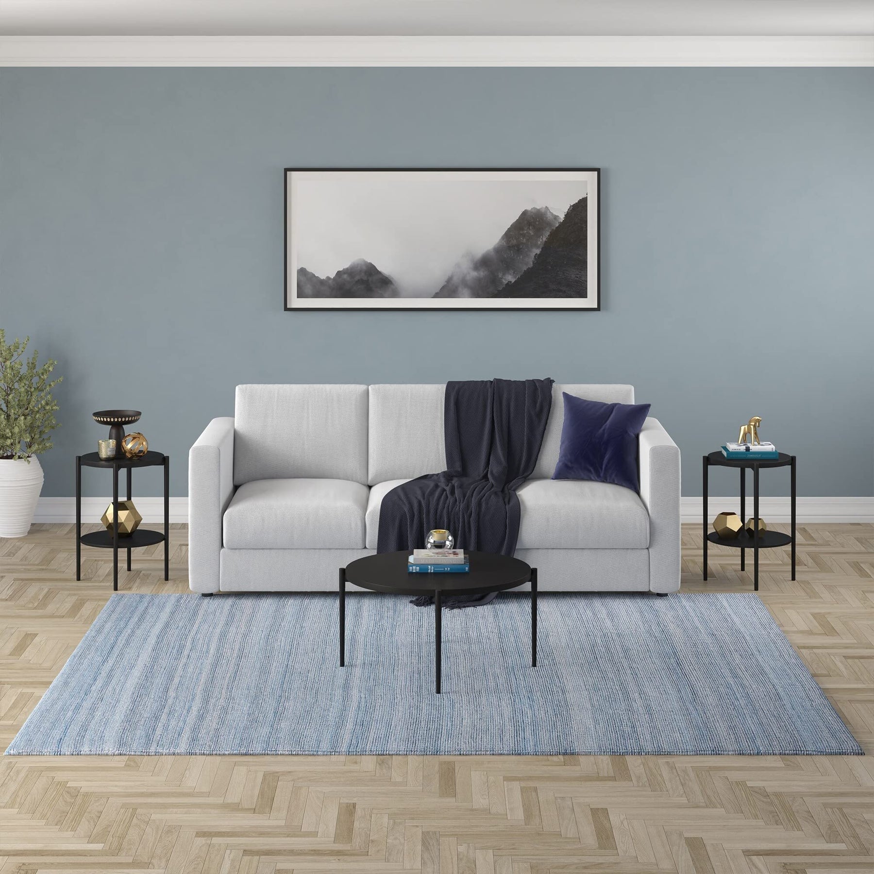 18'' Wide Round Side Table with Metal Shelf Black Modern