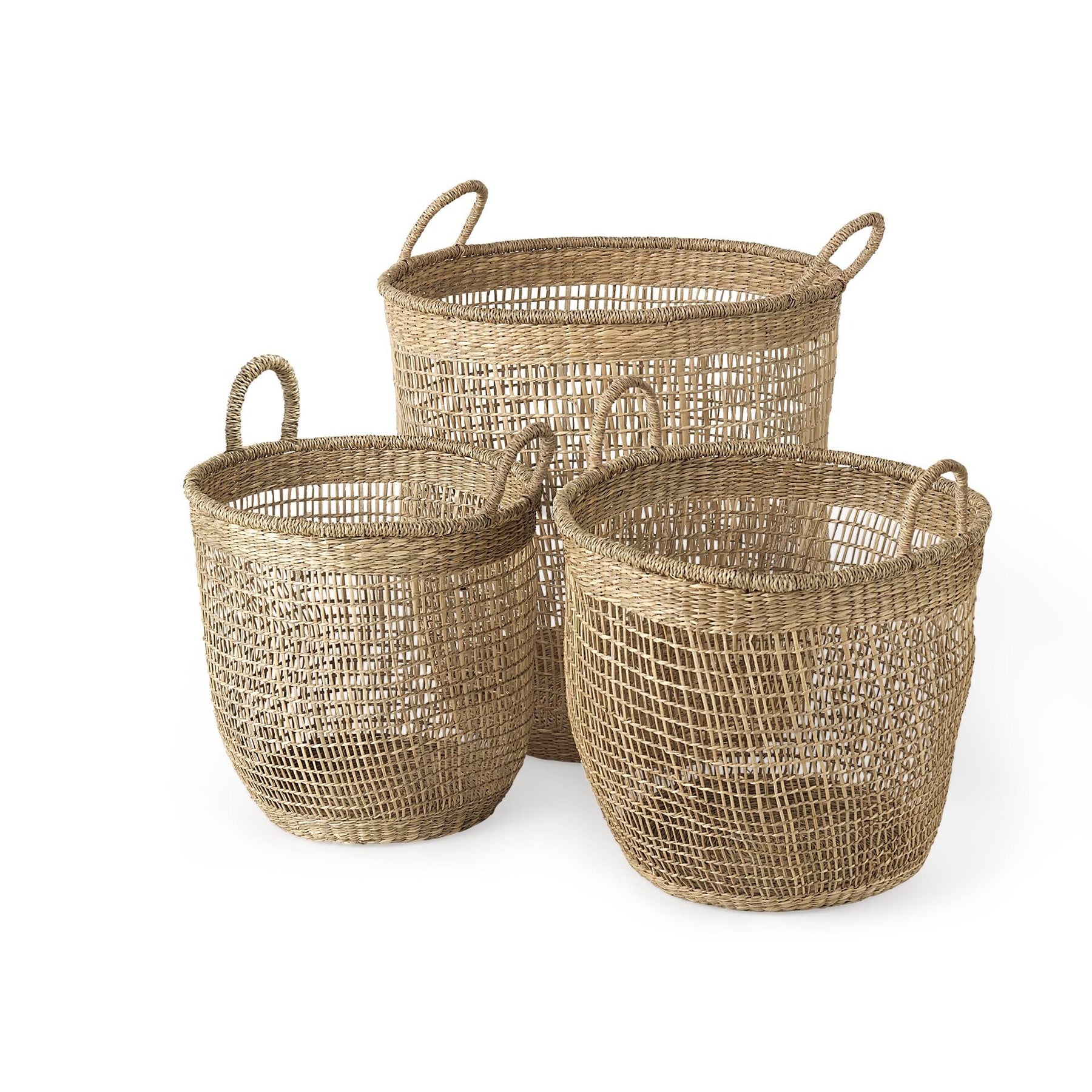 19.7l X 19.7w 19.7h (Set Of 3) Medium Brown Seagrass Round Basket W/ Handles Handmade | Material : Seagrass. Color : Brown | Product Size: 19.69 In. L X 19.69 In. W X 19.69 In. H.