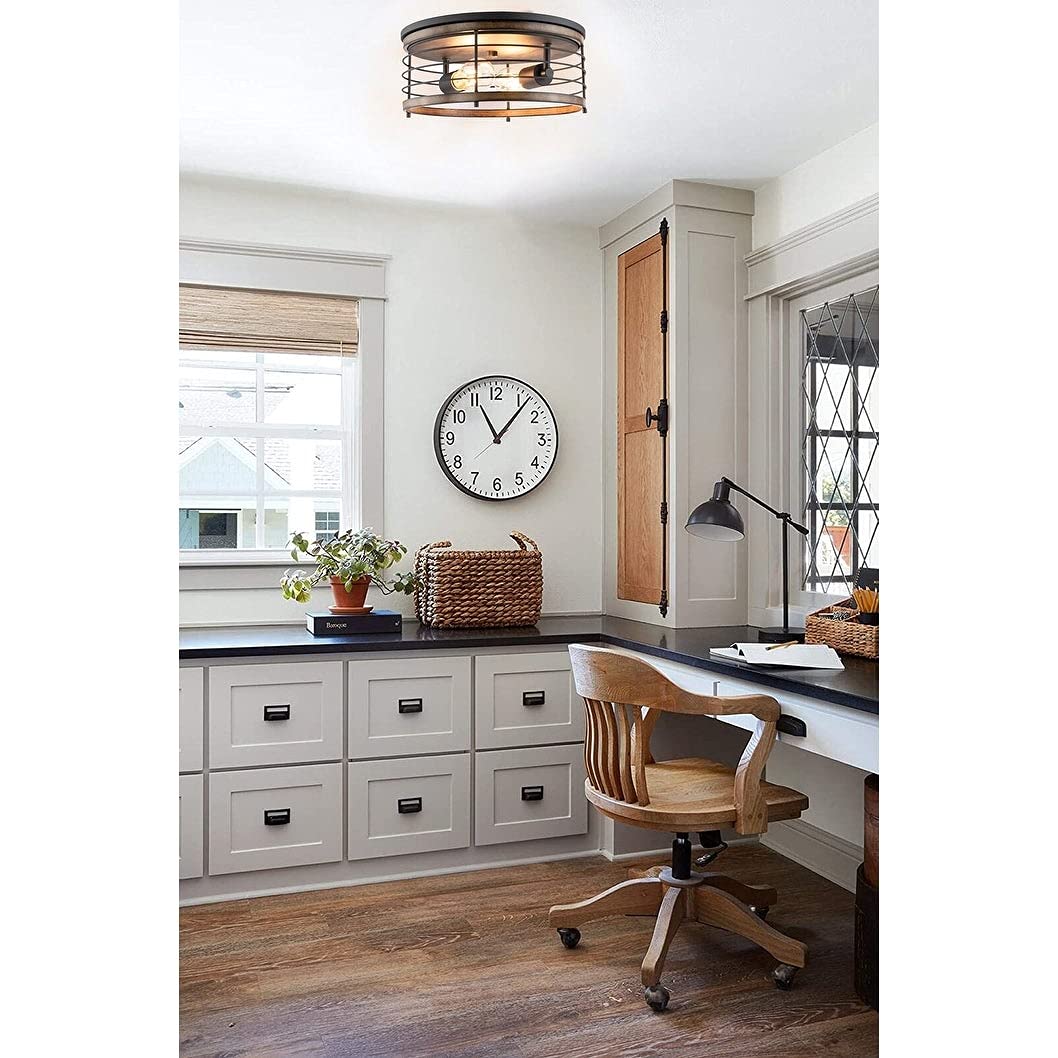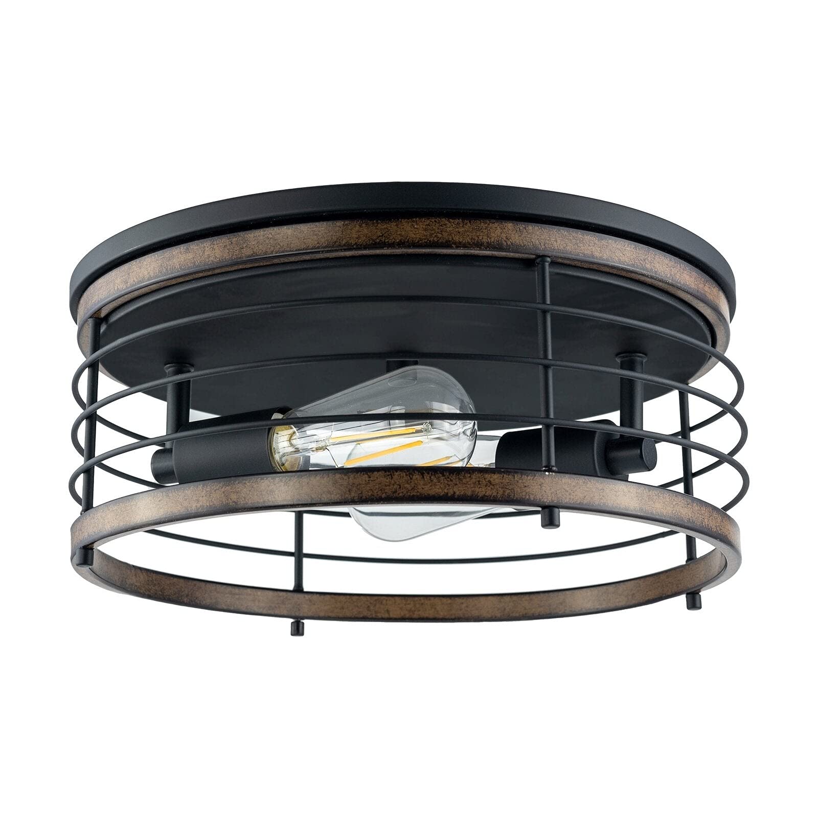 2 Light 13" Caged Drum Flush Mount 13"x5.85" Black Farmhouse