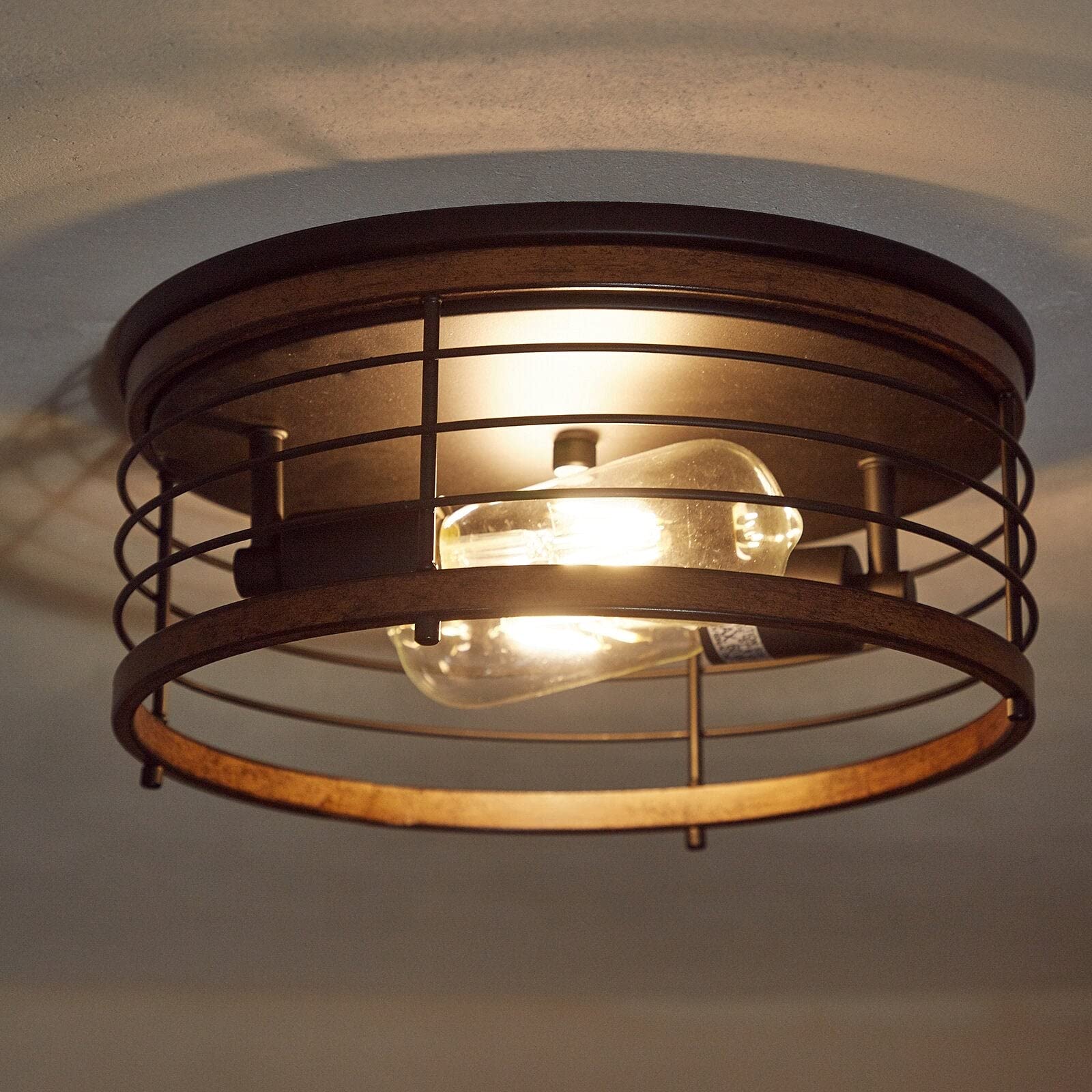 2 Light 13" Caged Drum Flush Mount 13"x5.85" Black Farmhouse Metal Dimmable | Glass type : No Glass. Assembly : Assembly Required. Color : Black. Color temperature : Selectable. Exact bulb wattage : 60. Exact number of lights : 2. Finish enhancements : Matte. Fixture design : Drum. Material : Metal. Light bulb type : Incandescent. Light direction : Downlight. Metal finish : Chrome. Power source : Hardwired. Dimmable | Product Size: 13.0 In. W X 5.85 In. H.