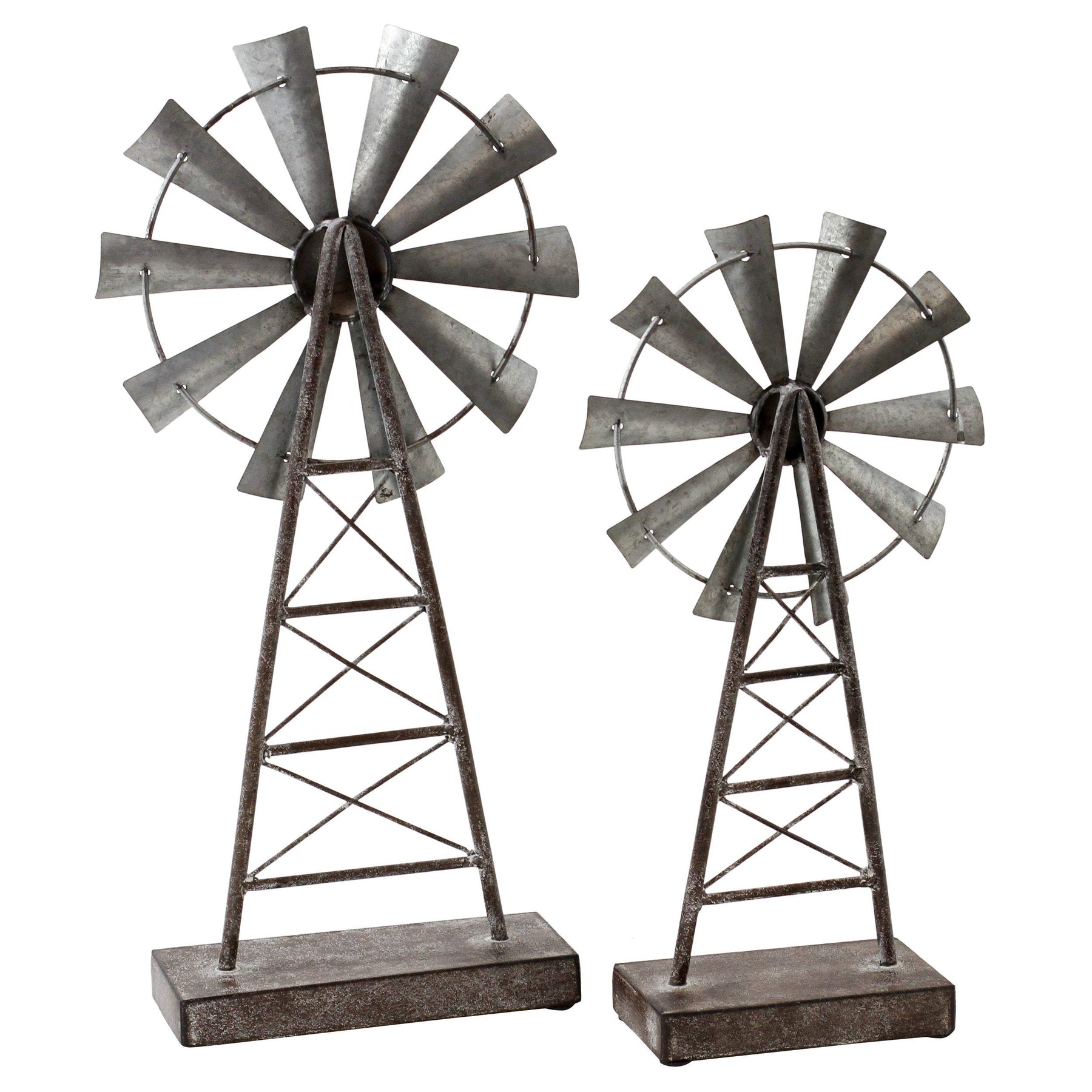 2 Piece Brown Grey Rustic Windmill Themed Table Decor Set