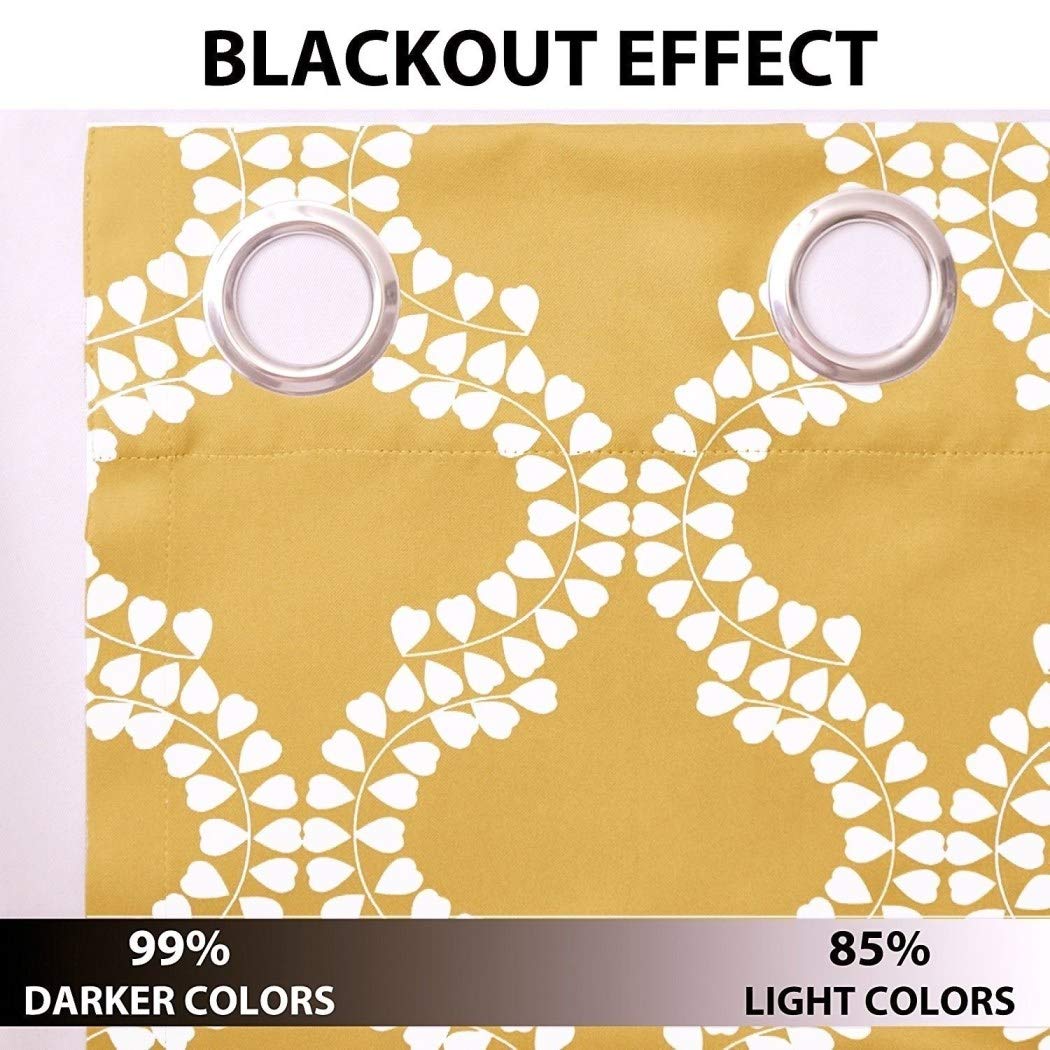 2 Piece Yellow Floral Window Curtain Set 84 Inch White