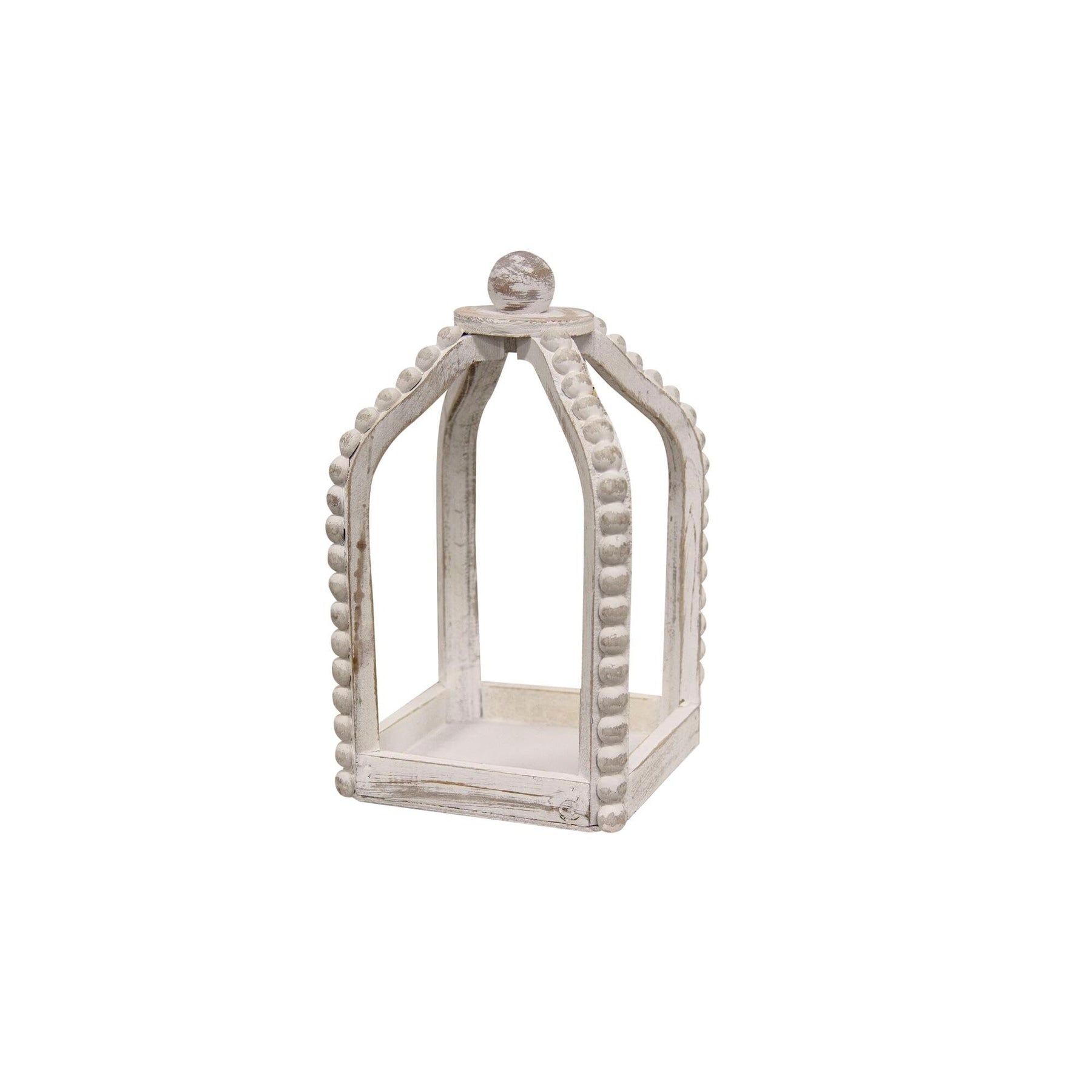 2/Set Shabby Chic Beaded Lanterns White Farmhouse Wood Antique