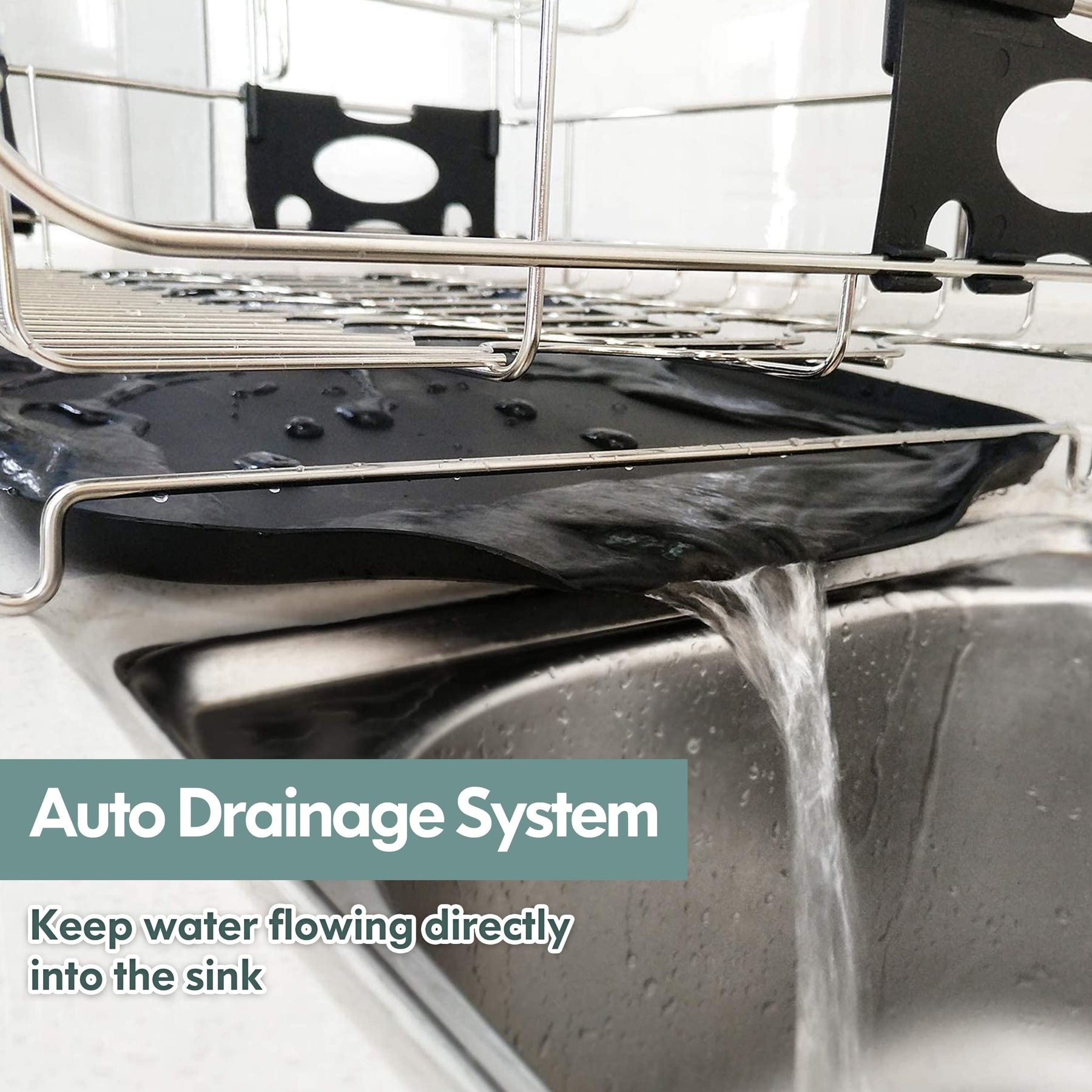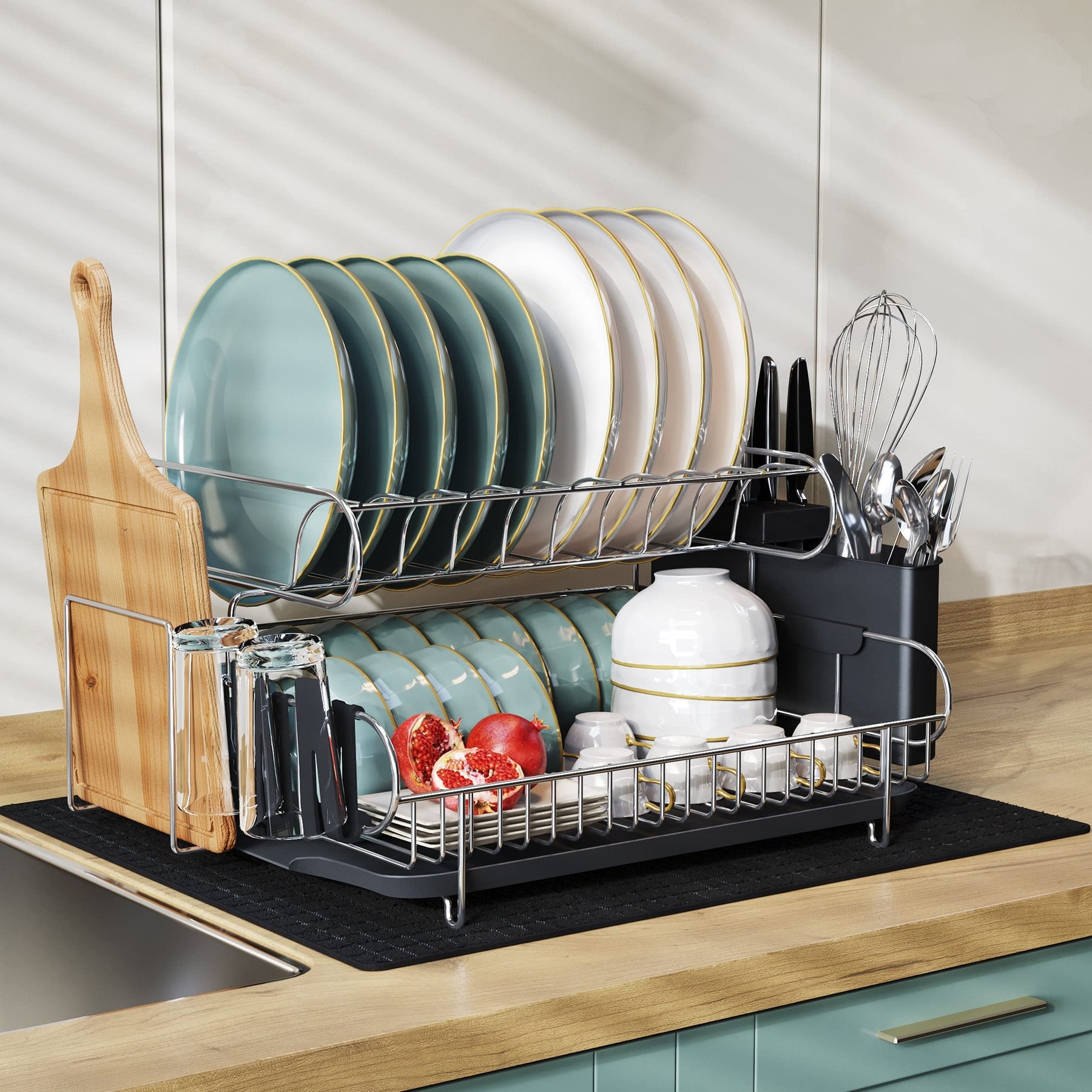 2 Tier Kitchen Stainless Steel Dish Rack with Cutlery Holder