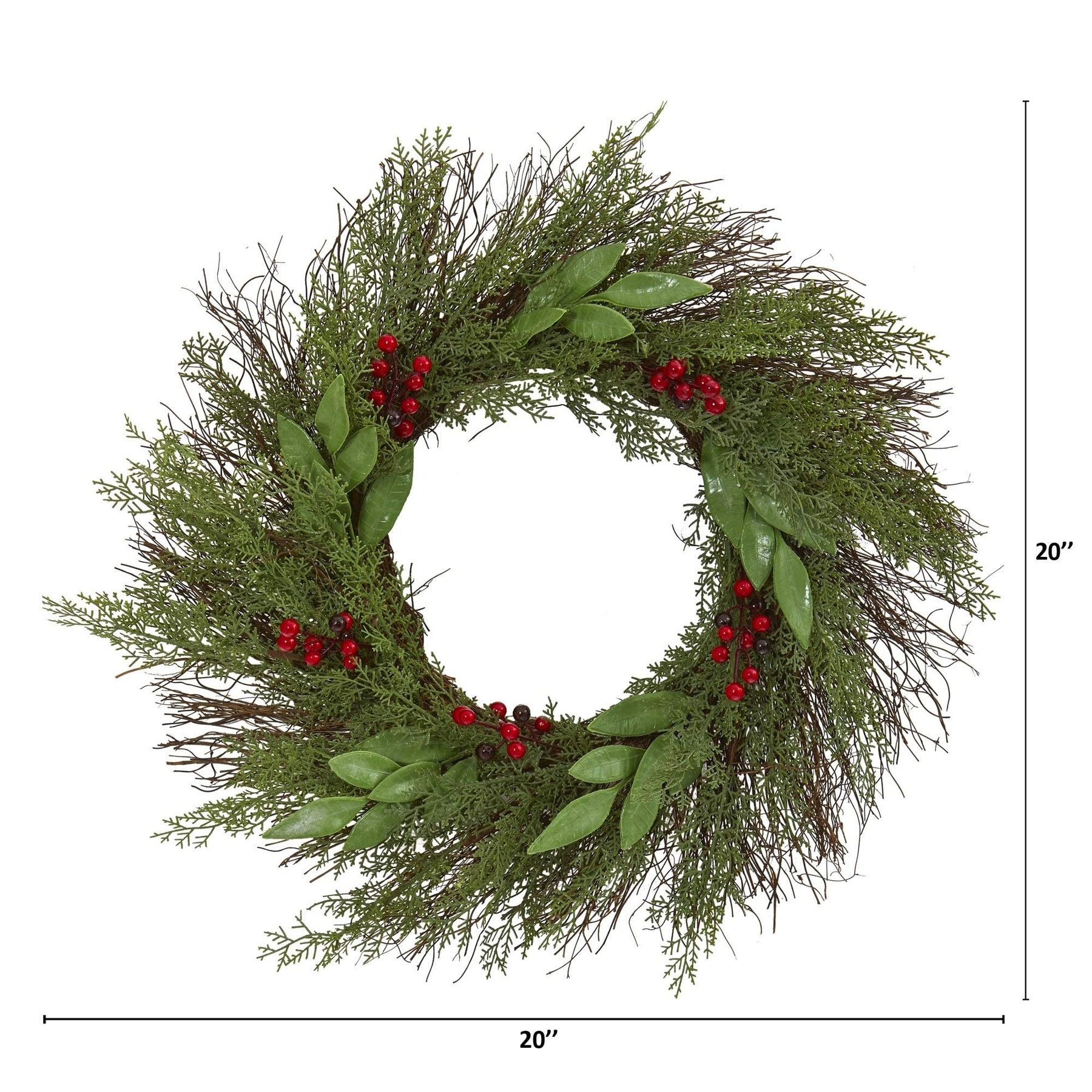 20" Cedar and with Berries Artificial Wreath Green Polyester
