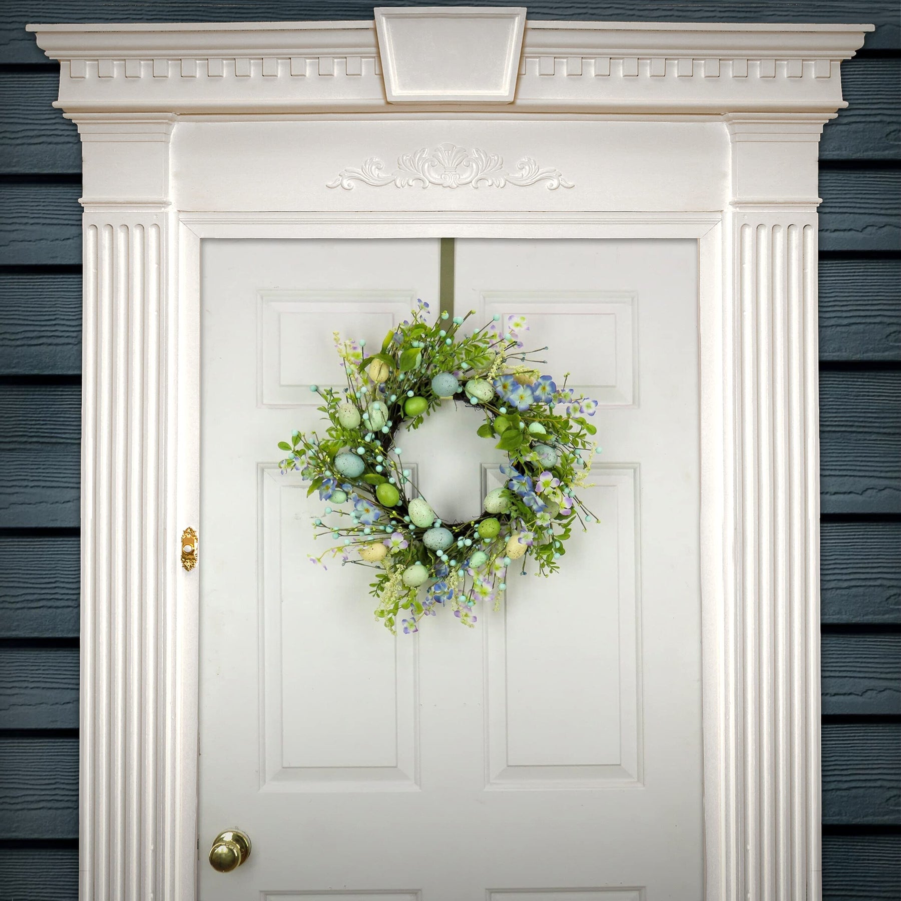 20" Flowering Blue and Green Easter Wreath Traditional Plastic - Diamond Home USA