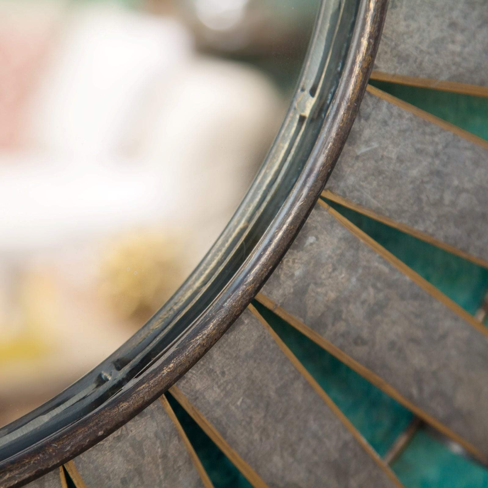 22.5in. Dia. Metal Windmill Wall Mirror Industrial Rustic Includes Hardware