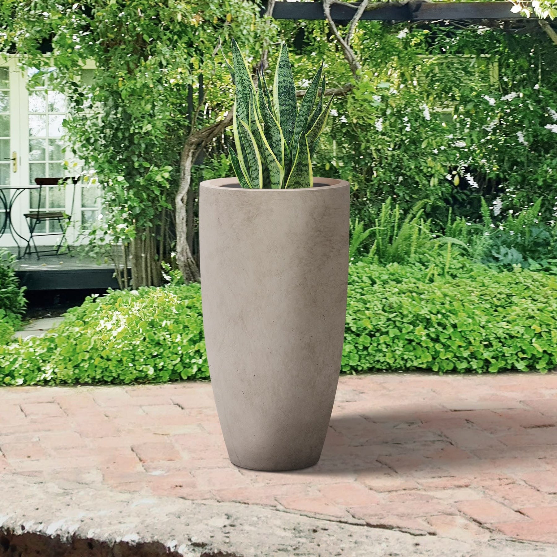 24" H Tall Concrete Planter Large Outdoor Plant Pot Modern