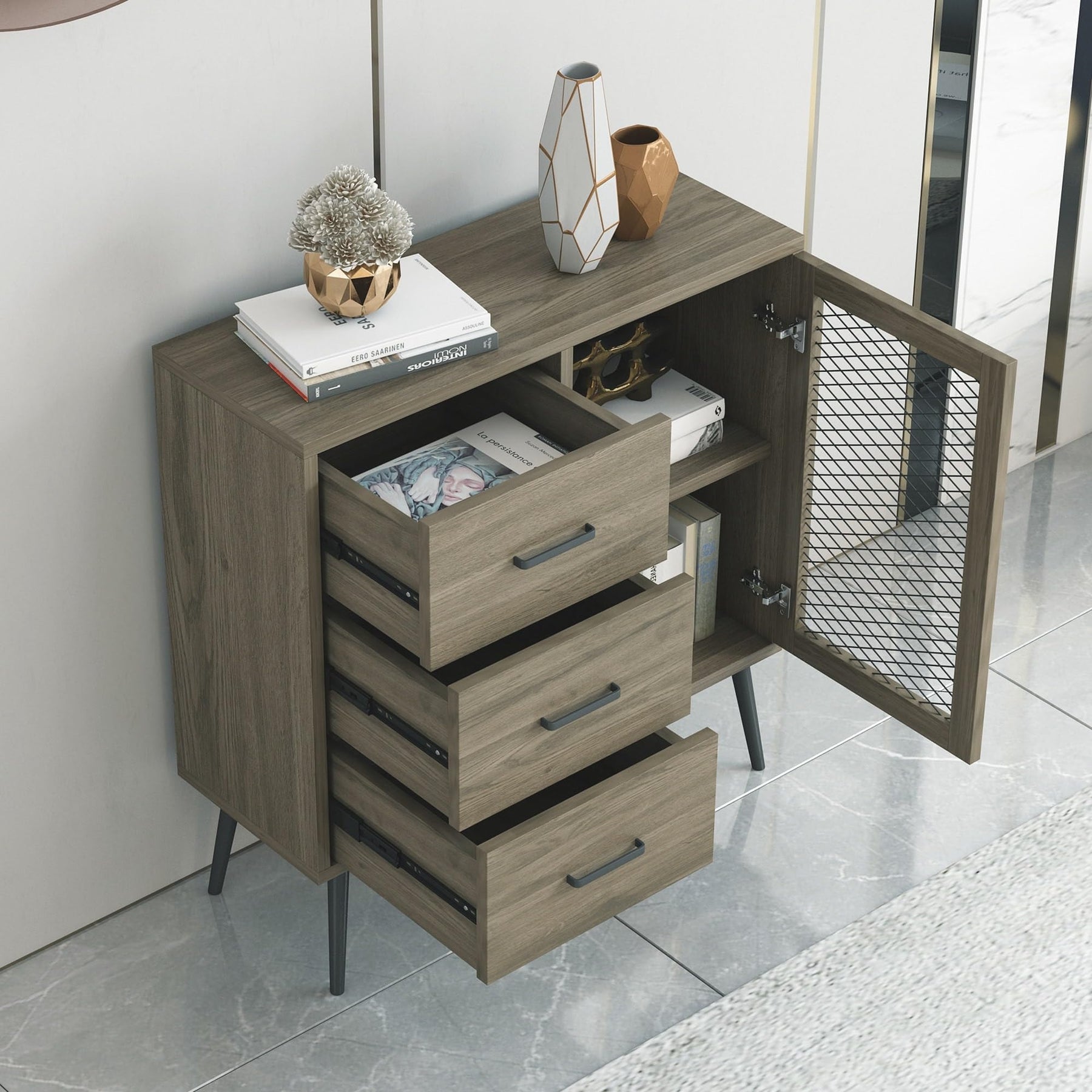 30-in Brown Wooden 3-Drawer Entryway Cabinet Console Table with Metal