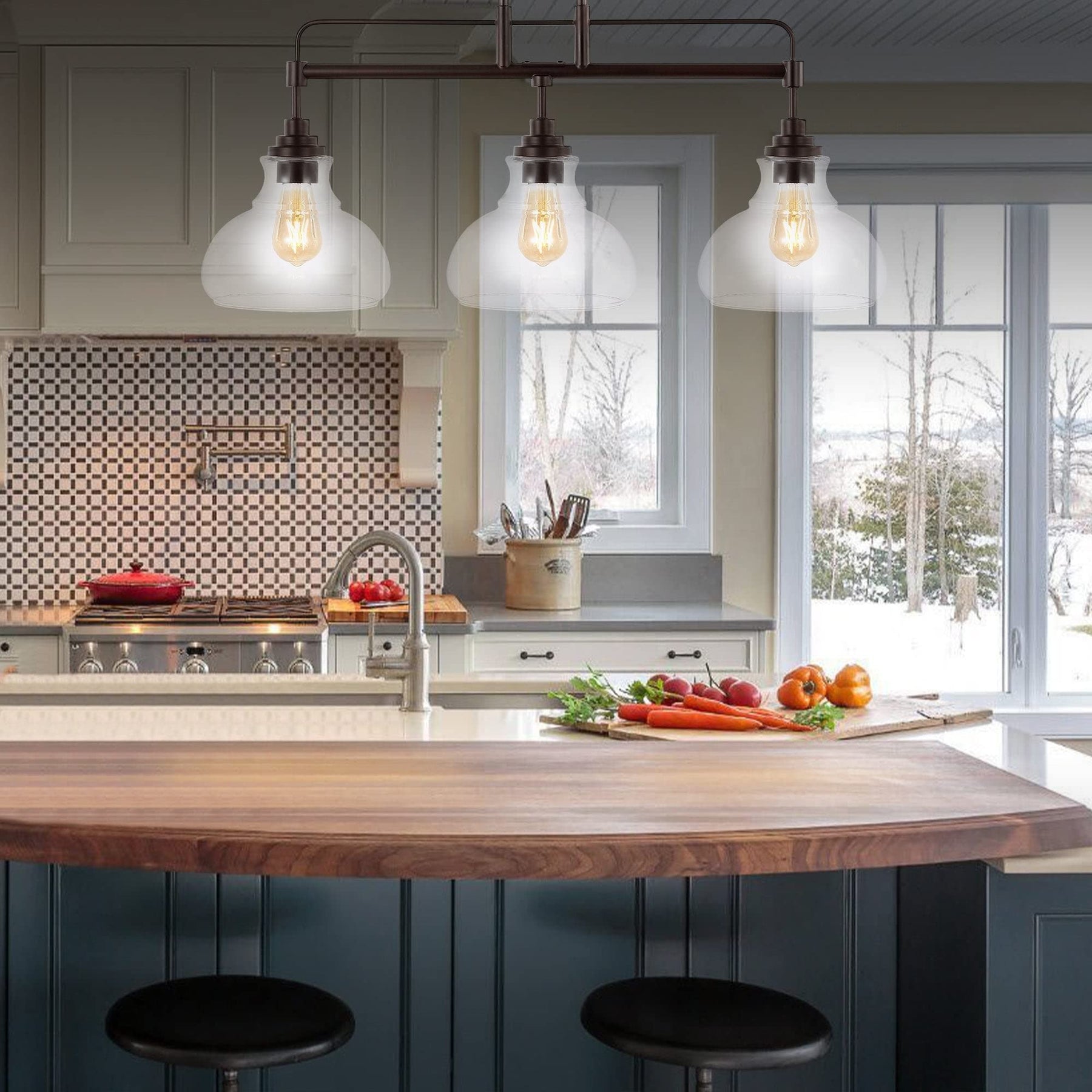 32.5" 3-Light Farmhouse Industrial Iron/Glass Linear Led Oil Rubbed Bronze/Clear