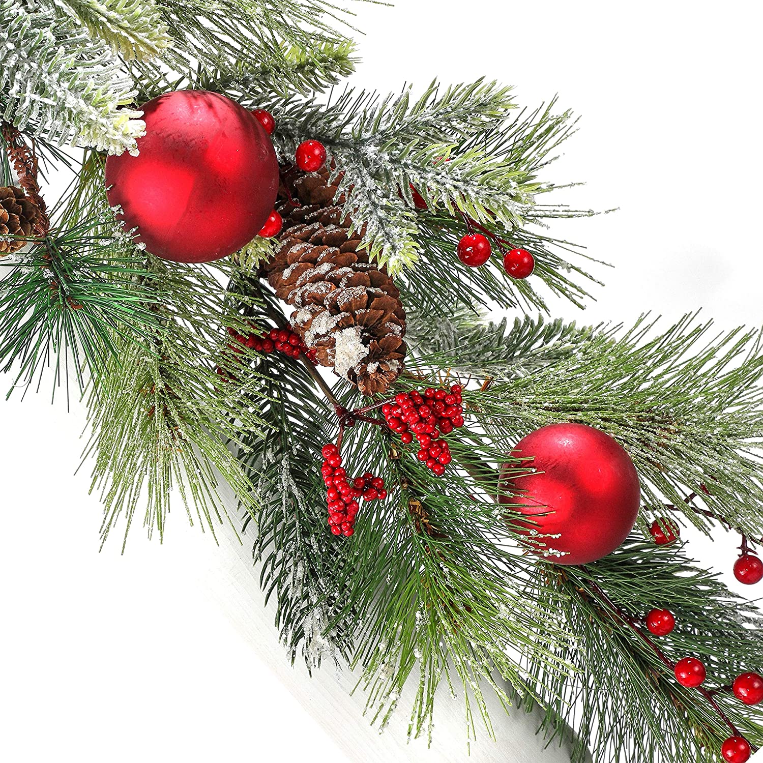 48" Frosted Pine Berry Ball Cone Garland Un lit - Diamond Home USA