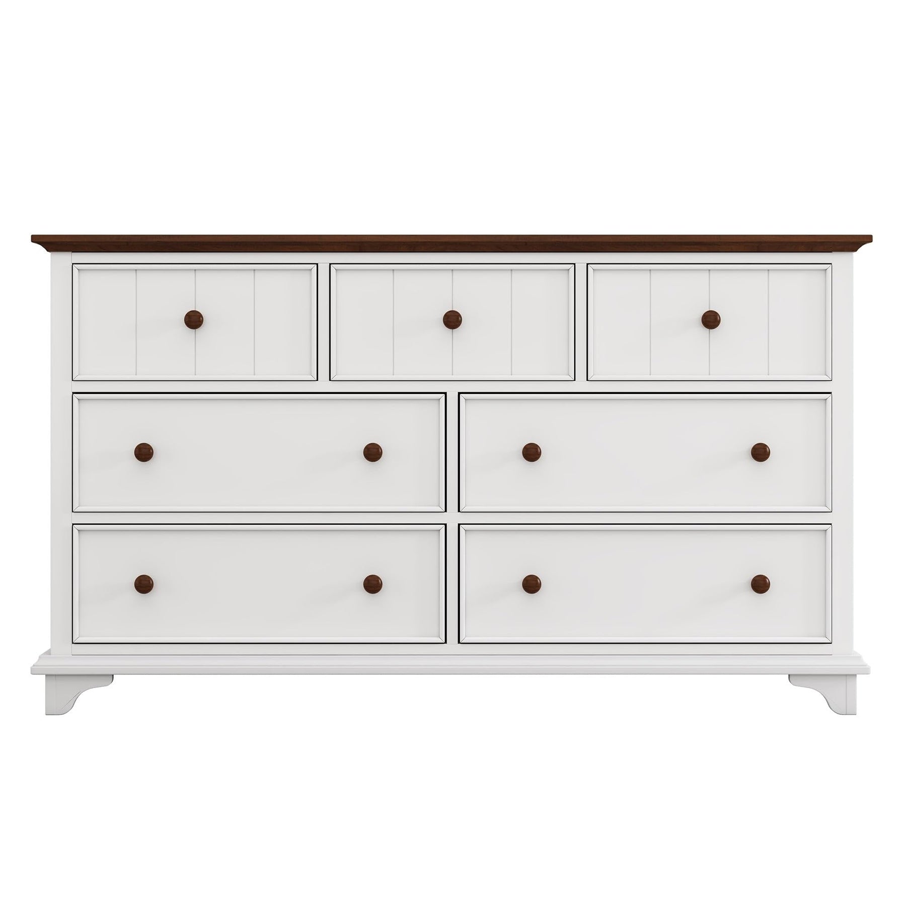 7-Drawer Wood Horizontal Dresser in White and Walnut Mission Craftsman MDF Pine