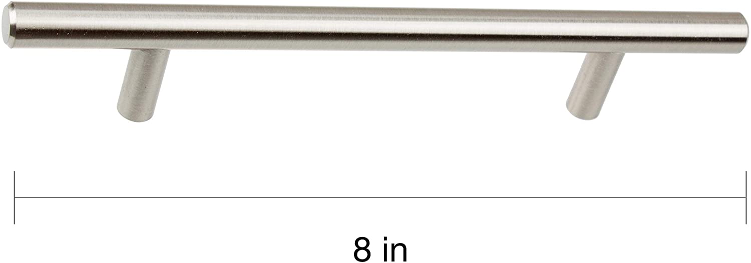 • 8-inch cabinet bar pulls. 5-inch screw spacing. Individually bagged to prevent damage to the finish. 2 standard installation screws are included. Sold as a pack of 10.