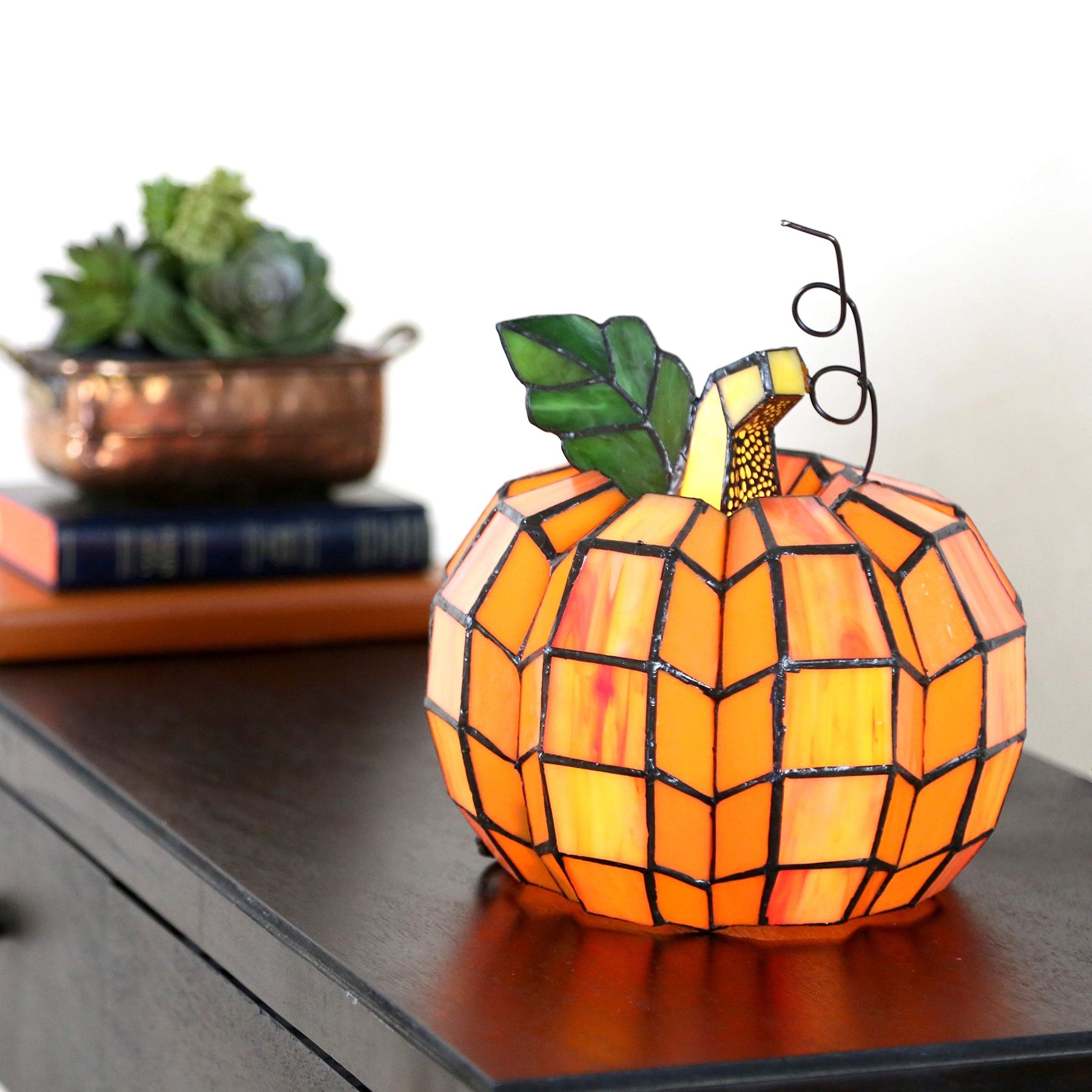 9" H Patch The Pumpkin Stained Glass Accent Lamp -