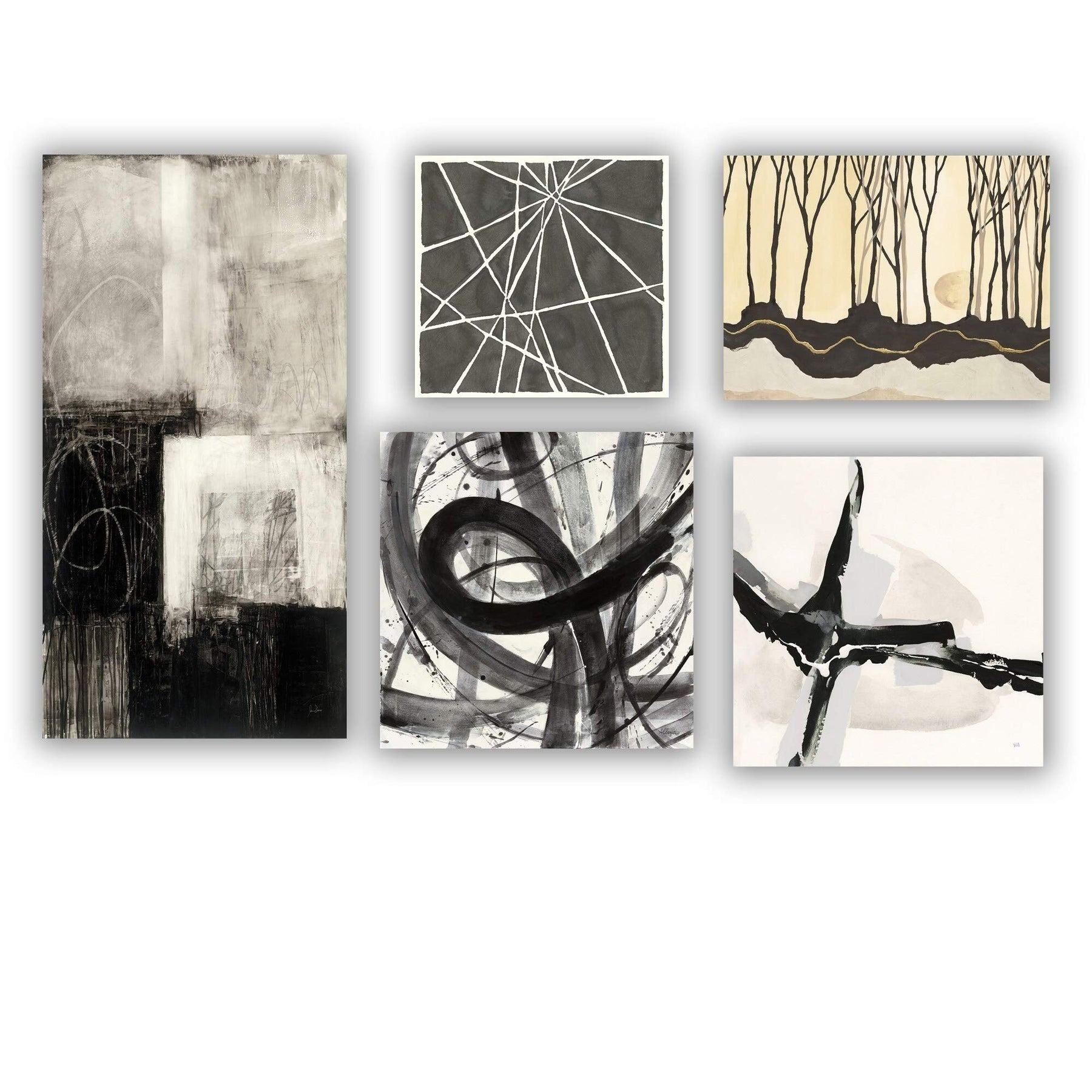Abstract Wall Art Set of 5 Pieces - Black Mid-Century