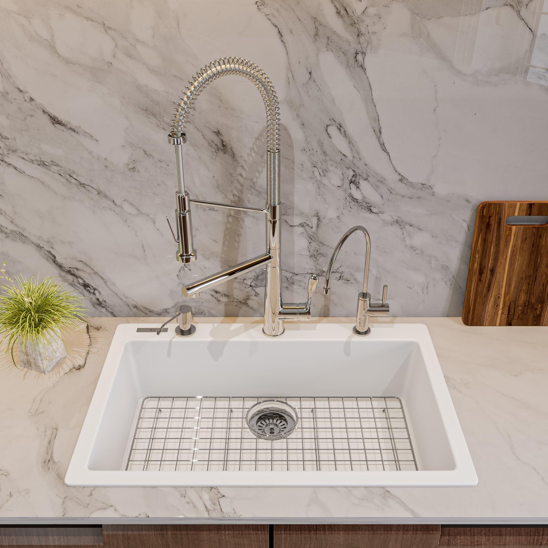 ALFI brand AB3020DI-W Drop-In Single Bowl Granite Composite Kitchen Sink