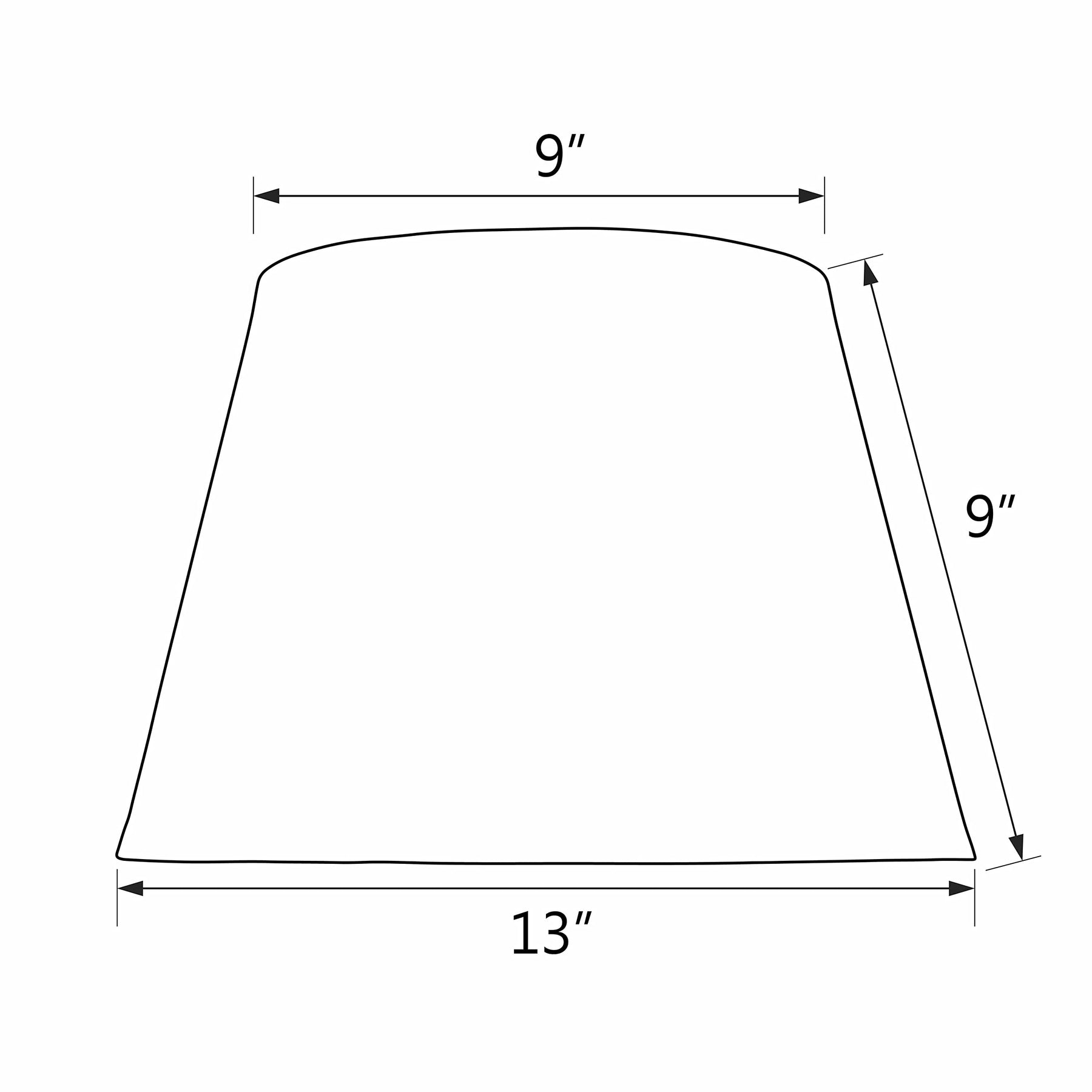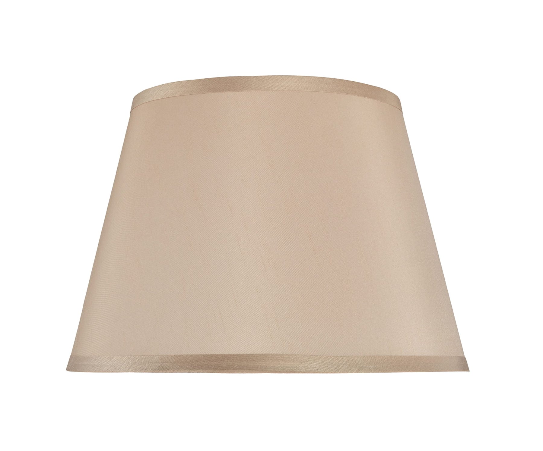 1 pack transitional hardback empire replacement lamp shade | faux silk fabric in beige | 9" top x 13" bottom x 9" slant height | Spider construction - designed to attach to lamp harp (Lamp harp sold separately) | Applications - For table lamps, accent lamps, vintage lamps, candle stick lamps and kid's room lamps | Our hardback shades use Virgin Styrene backing board to produce a warm, natural & smooth light - more appealing than shades made with recycled Styrene board that can crack & yellow over time.