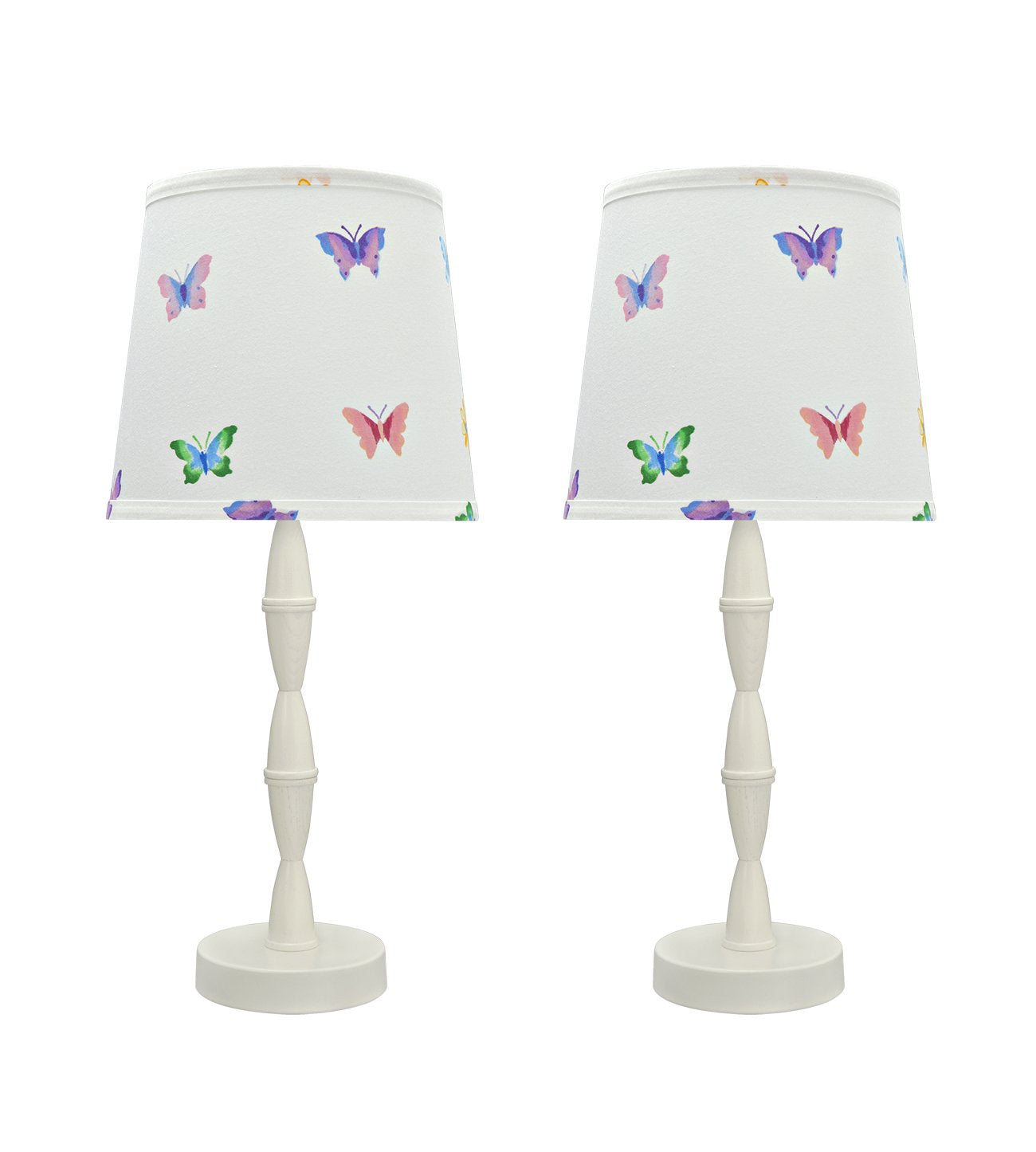 Aspen Creative is dedicated to offering a wide assortment of attractive and well-priced portable lamps, kitchen pendants, vanity wall fixtures, outdoor lighting fixtures, lamp shades, and lamp accessories. We have in-house designers that follow current trends and develop cool new products to meet those trends. Aspen Creative offers a two pack wood table lamp, transitional design in cream white finish with metal base. It includes a hardback empire shaped lamp shade made in white with butterflies. The lampshade size is 7 inch top, 9 inch bottom, and 8 inch slant height. The lamp has an on/off switch and uses a medium base light bulb, 60 watt max (light bulb not included). Lamp is UL listed. Our hardback shades use Virgin Styrene backing board to produce a warm, natural & smooth light - more appealing than shades made with recycled Styrene board that can crack & yellow over time. Applications - living room lighting and family room lighting, as well as bedrooms and offices