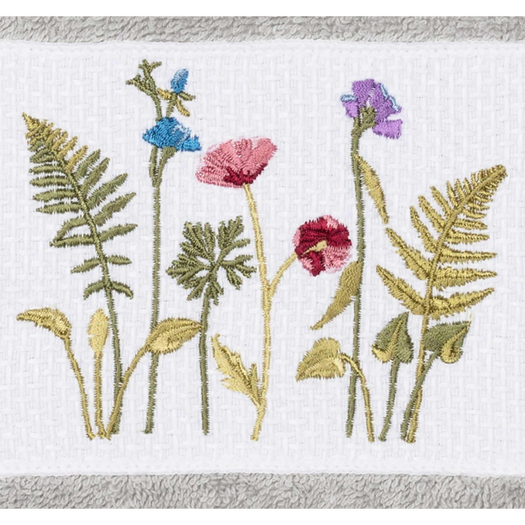 Authentic Hotel and Spa Grey Turkish Cotton Wildflowers Embroidered 4 Piece Towel Set