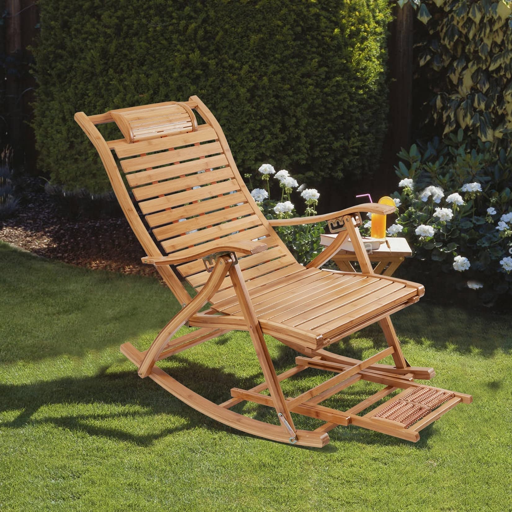 Bamboo Rocking Chairs Foldable Lounges Natural Classic Wood Finish Arm