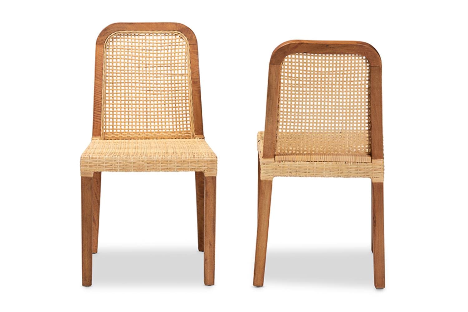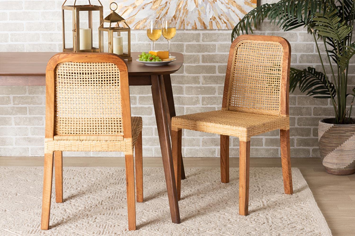 Baxton Studio Caspia Modern Brown Wood and Rattan 2-Piece Dining