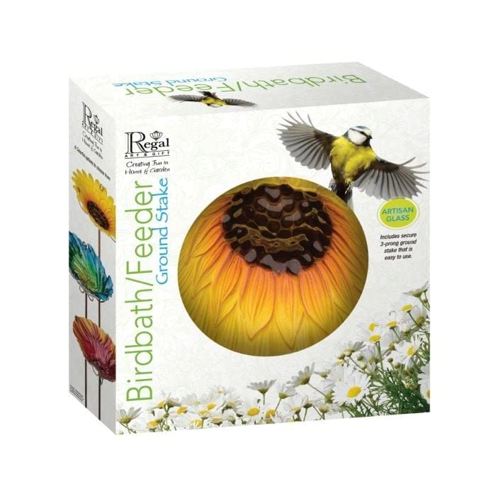 Birdbath/Feeder Stake Sunflower Yellow Art Glass