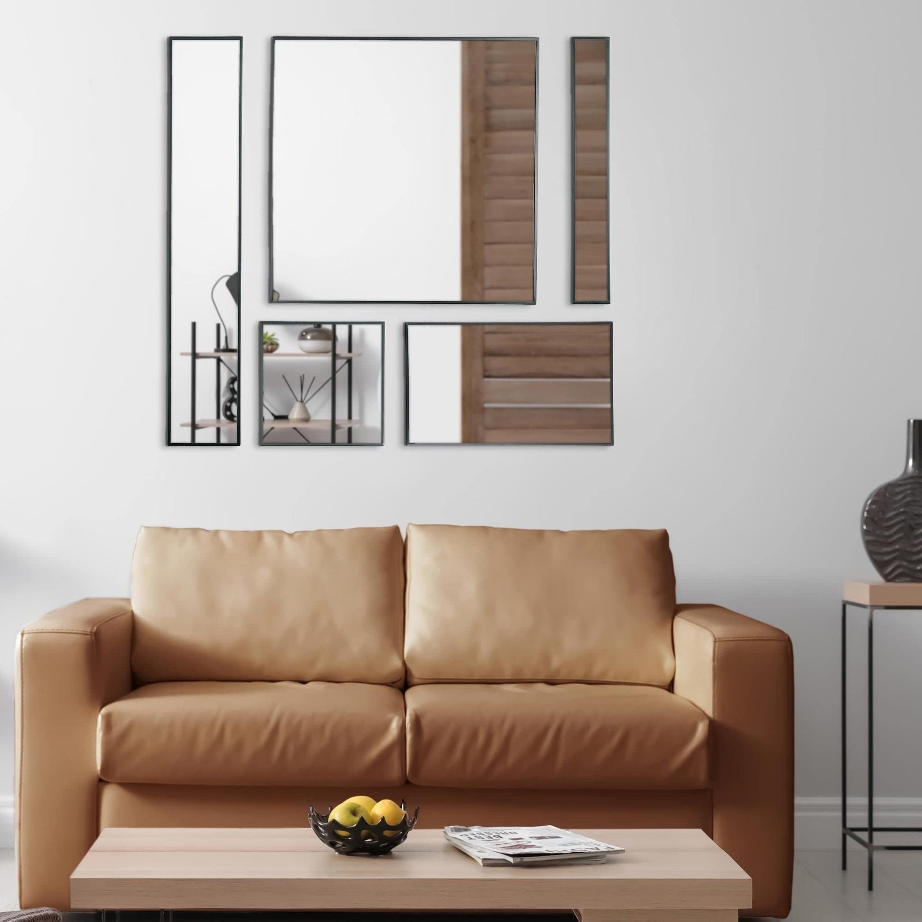 Black Metal Framed 5 Piece Accent Mirror Variety Set Modern