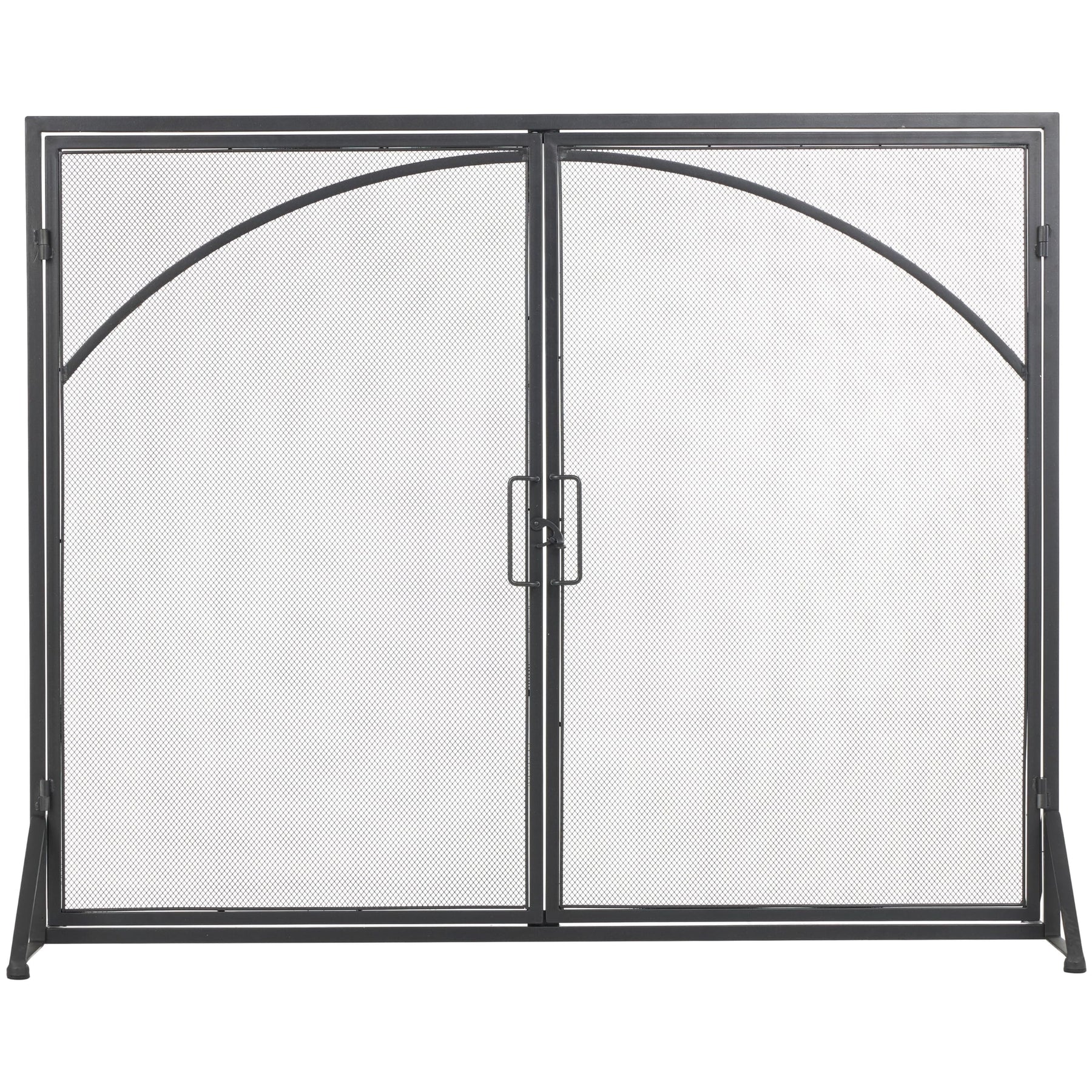 Black Metal Minimalistic Single Panel Fireplace Screen with Arch Inspired