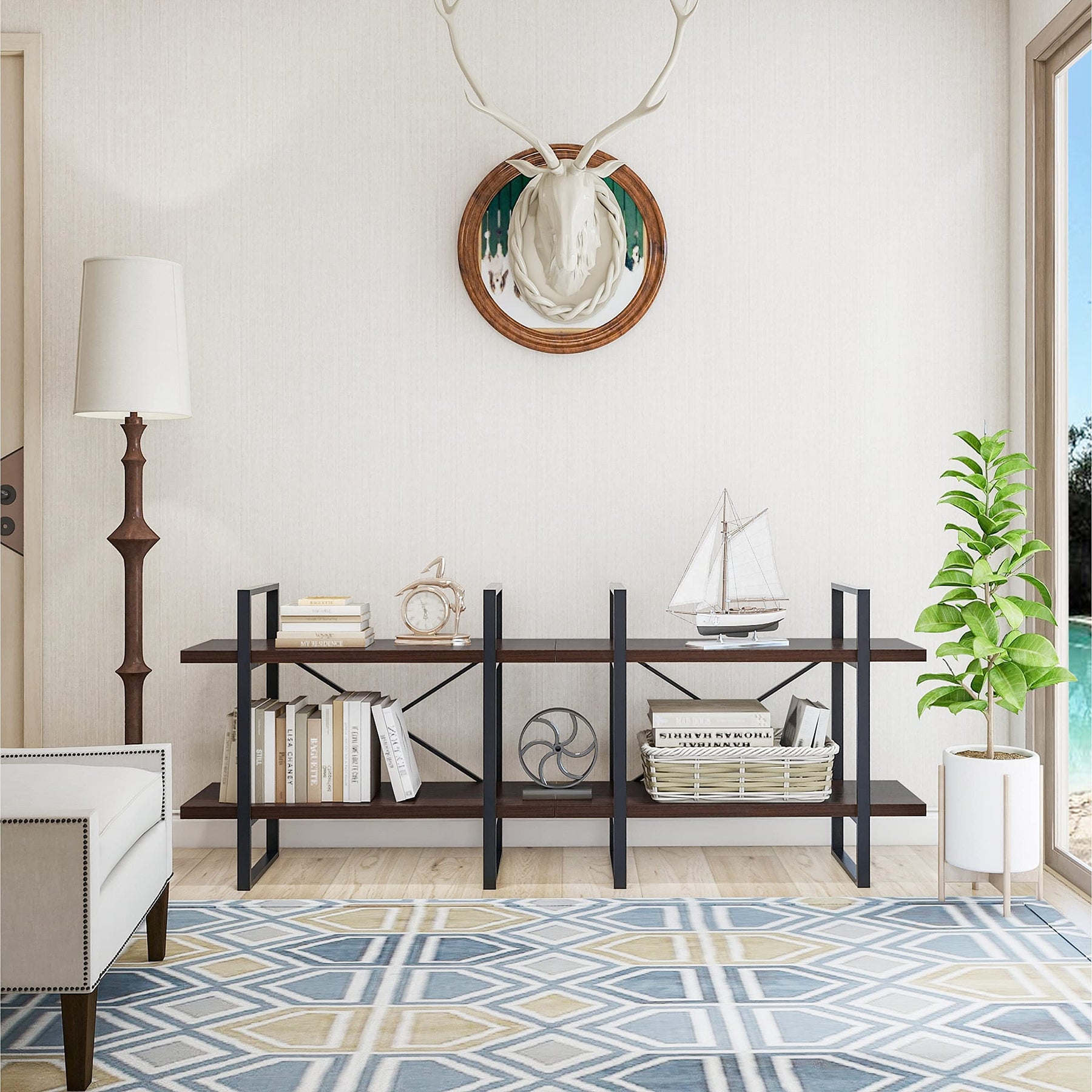 Black Walnut Adjustable Wood and Metal Display Steel Bookcase 11.34’’