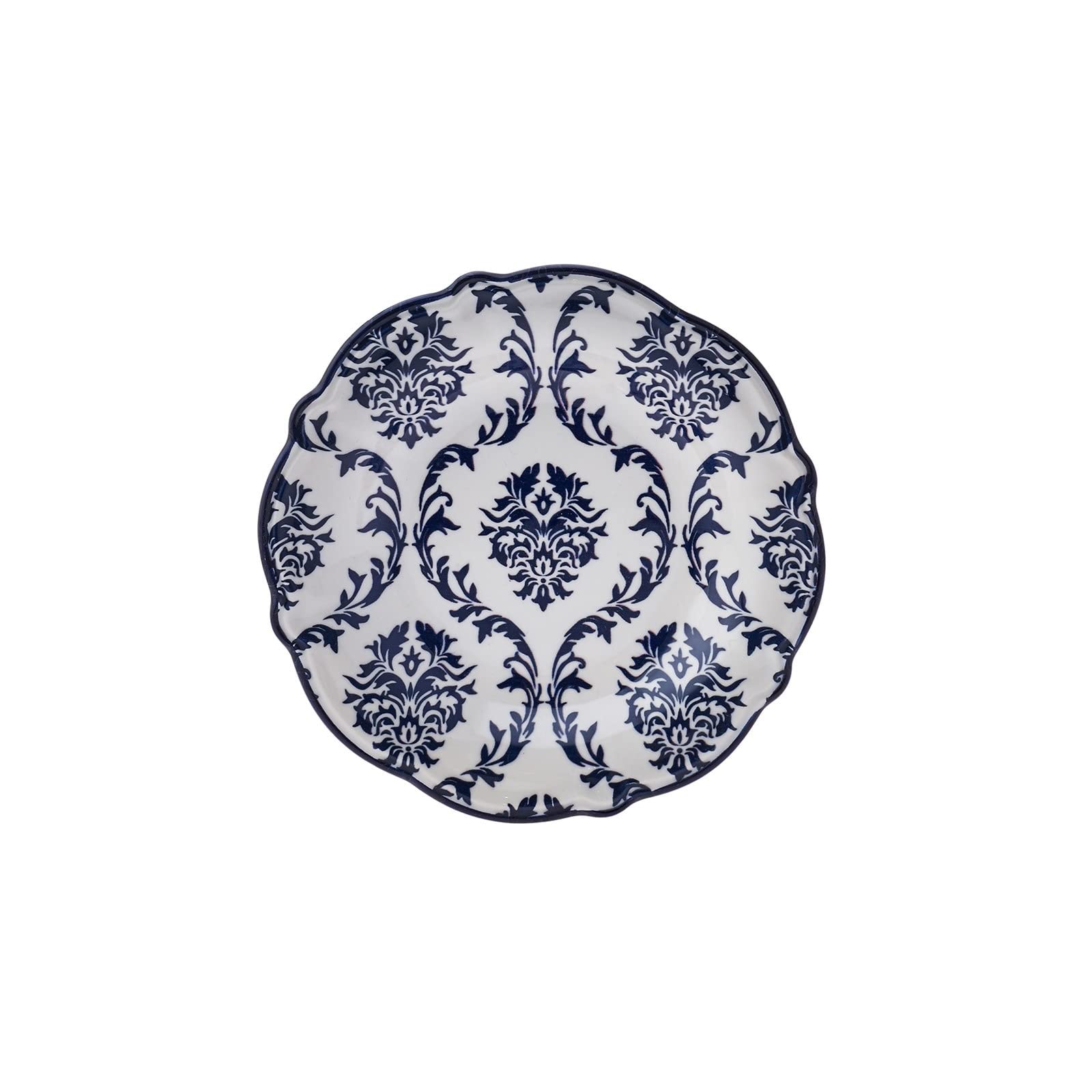 Blue Damask Porcelain Dinnerware Set Of 24 For 6 Textured Oriental Round Piece - Diamond Home USA