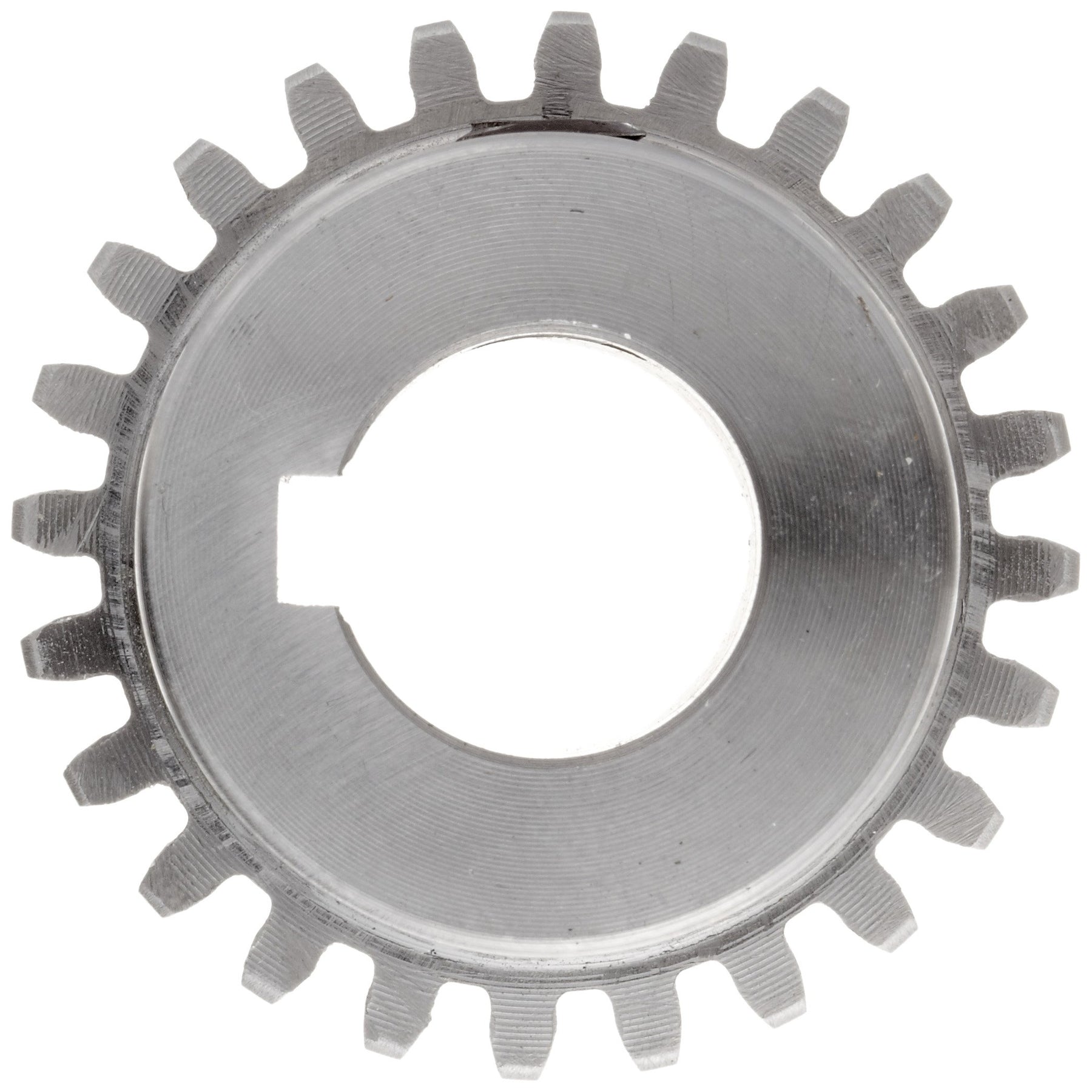 Description:The Boston Gear low carbon steel spur gear with 14.5-degree pressure angle (PA) and a diametral pitch (DP) of 16 transmits torque between parallel shafts to provide rotational power to another part of a motorized system. It has a 14.5-degree pressure angle for a higher contact ratio between gears than larger pressure angles, resulting in quieter operation, and a 16-diametral pitch for applications requiring a balance between transferring torque and controlling changes in speed and direction of rotation with precision. This spur gear, which can mesh only with spur gears that have the same pressure angle and diametral pitch, is made of low carbon steel (.2 percent carbon) for applications where the hardness and strength of higher levels of carbon are not needed to transmit torque and motion. This Boston Gear spur gear is suitable for use in a variety of commercial and industrial applications, such as construction equipment, aeronautics, conveyors, and manufacturing equipment, among others.Spur gears, the most common gear type, have a circular or cylindrical shape with teeth bordering the outer perimeter and are used for transmitting rotational torque and motion between parallel rotating shafts. A spur gear's pressure angle (PA), diametral pitch (also called DP or pitch), and its material are important factors to consider when purchasing. Gears come in several types for use in different power transmission configurations and for different applications, including bevel and miter gears (for rotating shafts perpendicular to each other), change gears (to increase or decrease torque and speed), helical gears (for high rates of rotational speed), internal gears (where one gear is nested inside the other), rack and pinion gears (for turning rotational motion into linear motion), and worm gears (for perpendicular shafts in tight spaces and quiet operation). Gears are suitable for use in the agriculture, automotive, construction, mining, and packaging industries, and can be found in a variety of machines, including bicycles, automobiles, and elevators, among others.Boston Gear manufactures a variety of gear drives, variable speed drives, clutches, and the components that comprise these systems including sprockets and bearings. Their manufacturing designs, production, and inspection meet International Organization for Standardization (ISO) standards for quality assurance. The company, founded in 1877, is headquartered in Charlotte, NC.