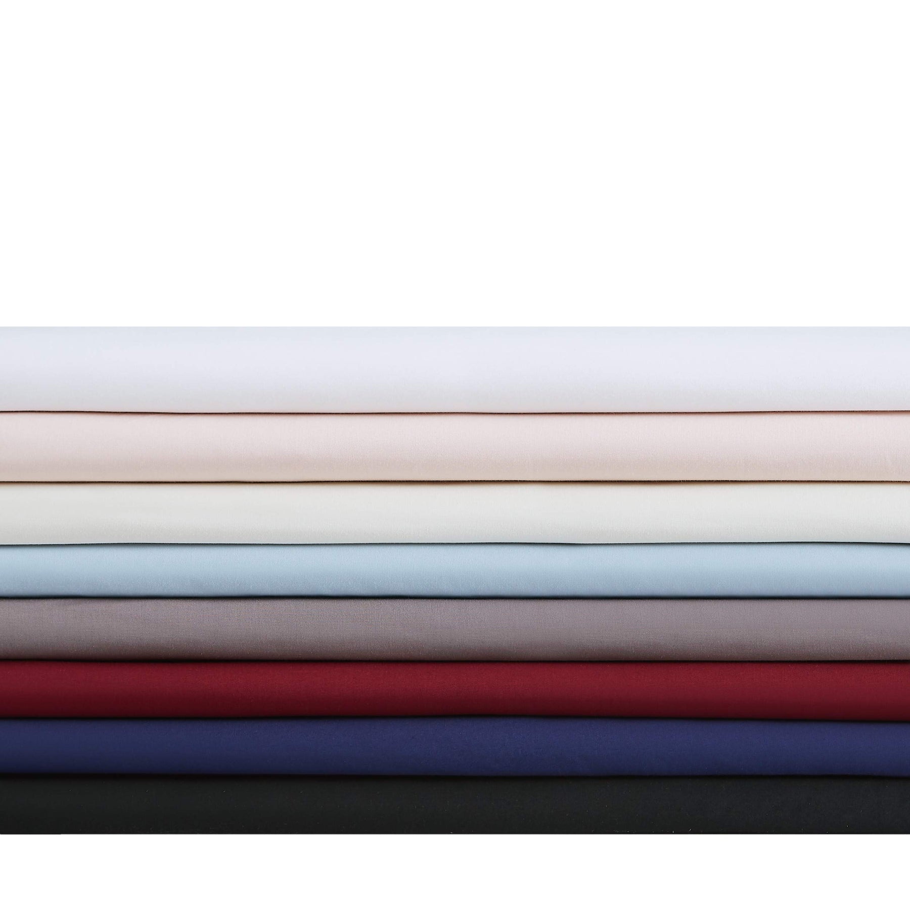 Includes one fitted sheet (78x80 inches) with 13 inch pocket to fit up to a 15 inch deep mattress, one flat sheet (108x102 inches), and two pillowcases (20x40 inches) | Cotton Percale is a close knit that combed to a super fine finish that is incredibly breathable and lightweight. | Classic tones and colors chosen as carefully as the high quality materials. Choose from grey, white, blush, black, ivory, navy, light blue, and burgundy. | Ideal light weight for those that get warm or prefer light sheets and duvet covers. | Upgrade your living spaces with comfy and neat bedding from Brooklyn Loom. Machine washable.