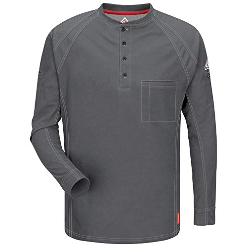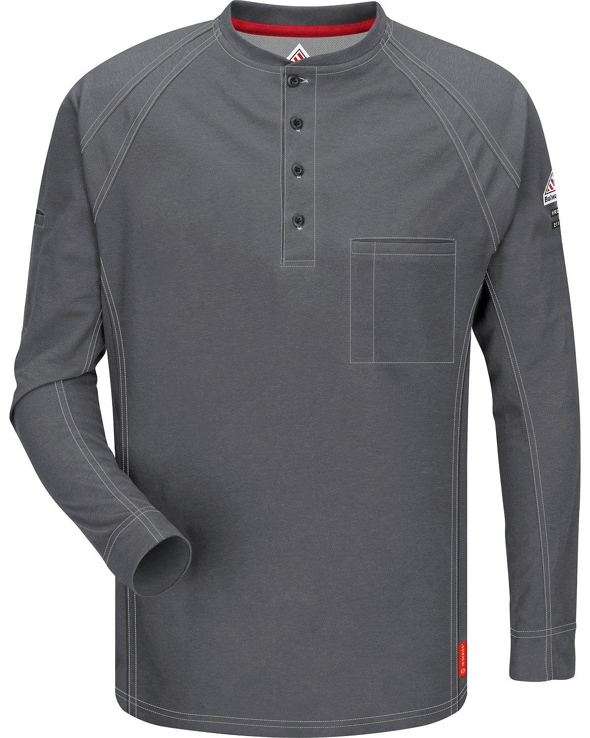 Bulwark Men's IQ Series Long Sleeve Comfort Knit Henley Charcoal