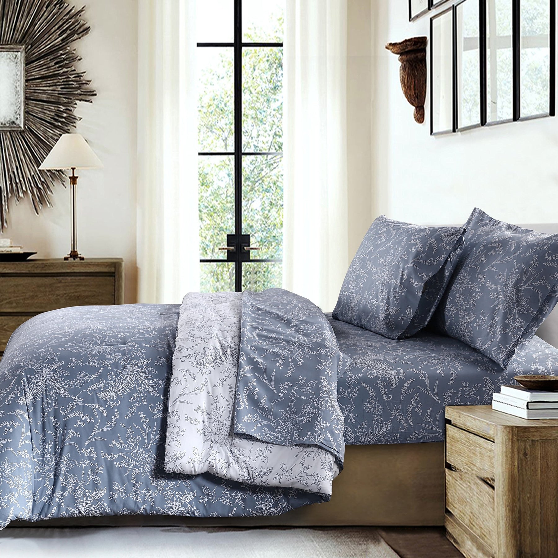 C&U 3 Piece Blue Floral Duvet Cover King/Cal King Luxurious Soft Brush Flower - Diamond Home USA