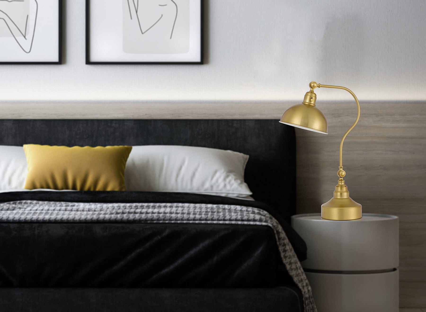 This retro inspired desk lamp is sure to add a touch of elegance to your décor. It features an adjustable head and arm for an optimal control of light. The light has a weighted base for added stability. This lamp will surely make a great addition on top of a desk or nightstand.