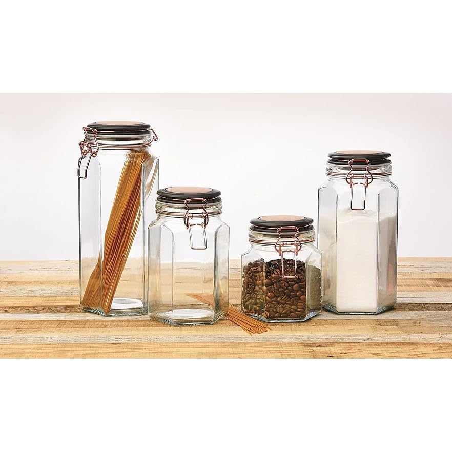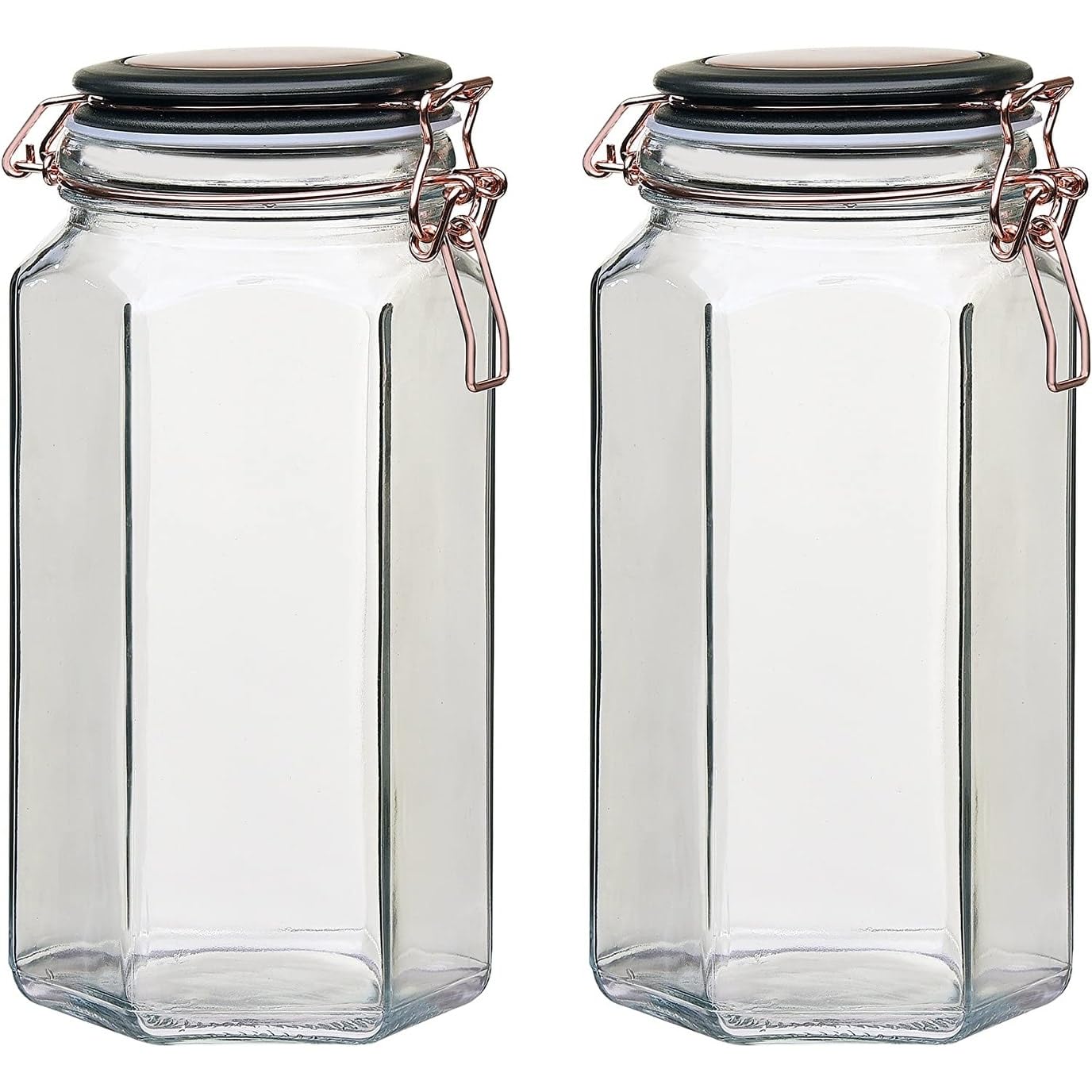 Canister Jar Hexagon Set Of 2 Black Clear Glass