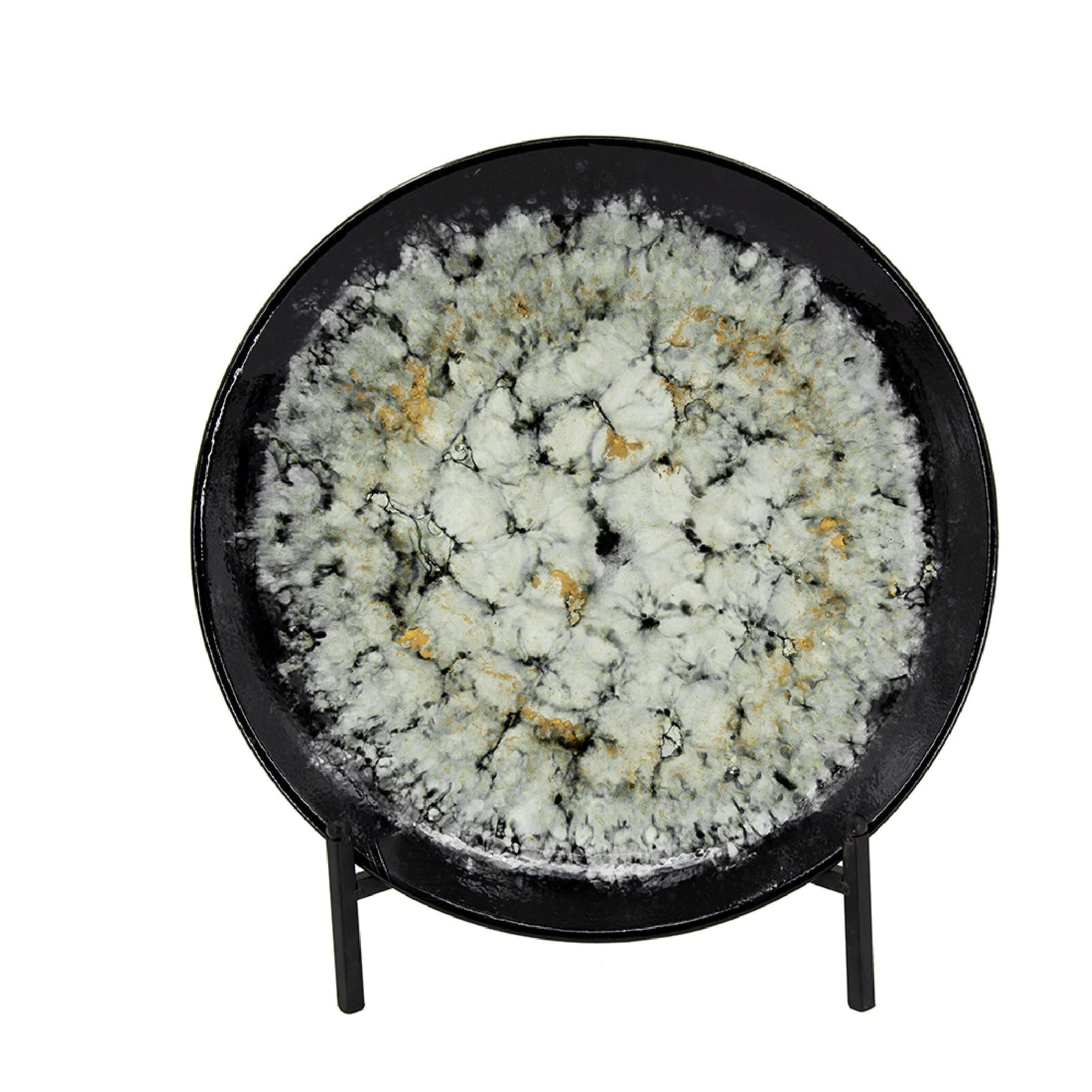 Ceramic Charger With Stand Black/white Black White Round St1ware 1