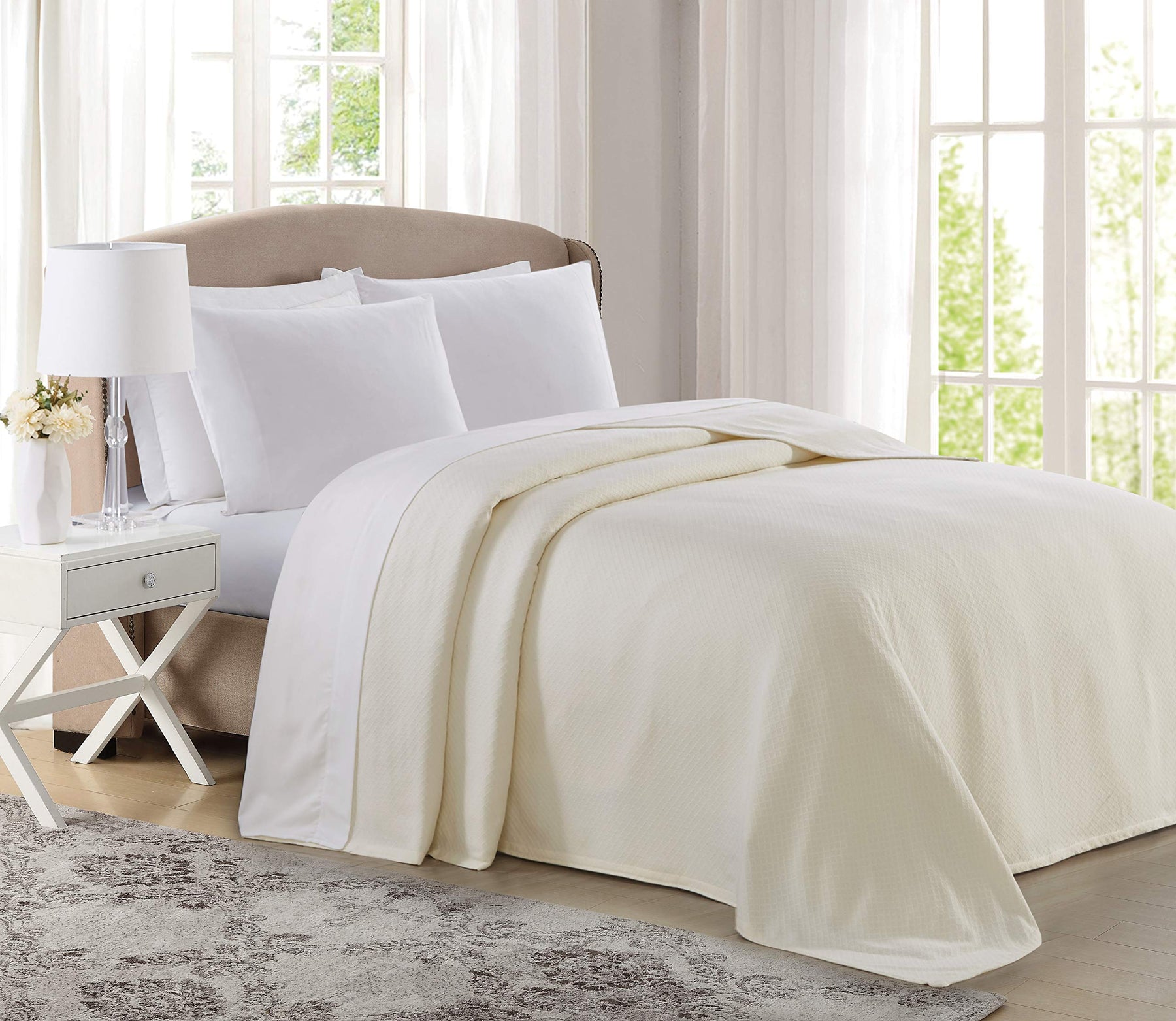 Charisma Deluxe Woven Queen Ivory Blanket | Includes one queen blanket (90x90 inches) | Charisma's high standards caters to customers that can recognize quality and settle for nothing less. Only get the best for your home and sleep soundly in Charisma. | Blanket is 100% cotton. | Machine washable