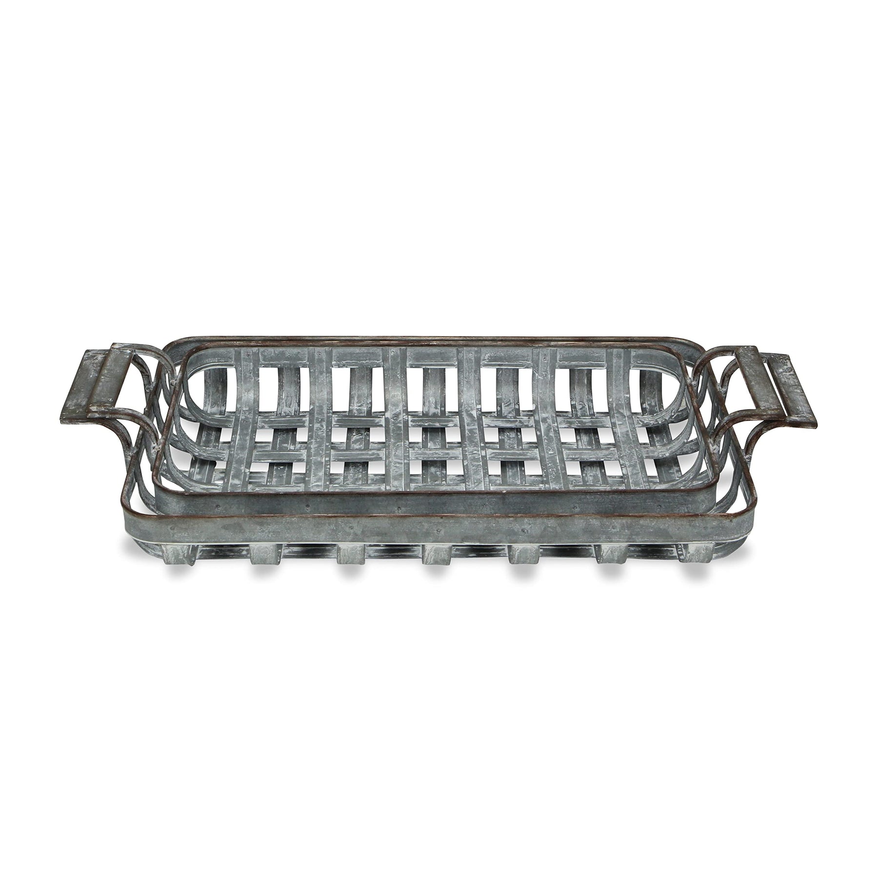 Cheungs Set of 2 Rectangular Woven Metal Side Handles Tray