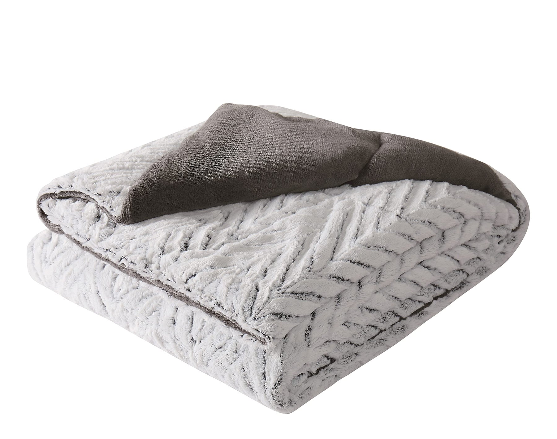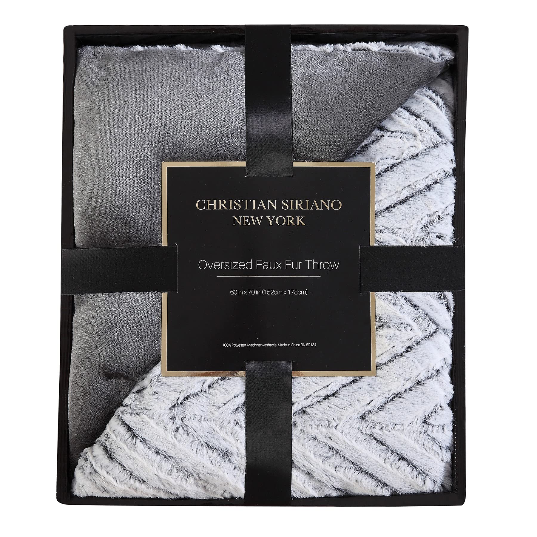 Christian Siriano - Grey Chevron Luxury Faux Fur Filled Throw