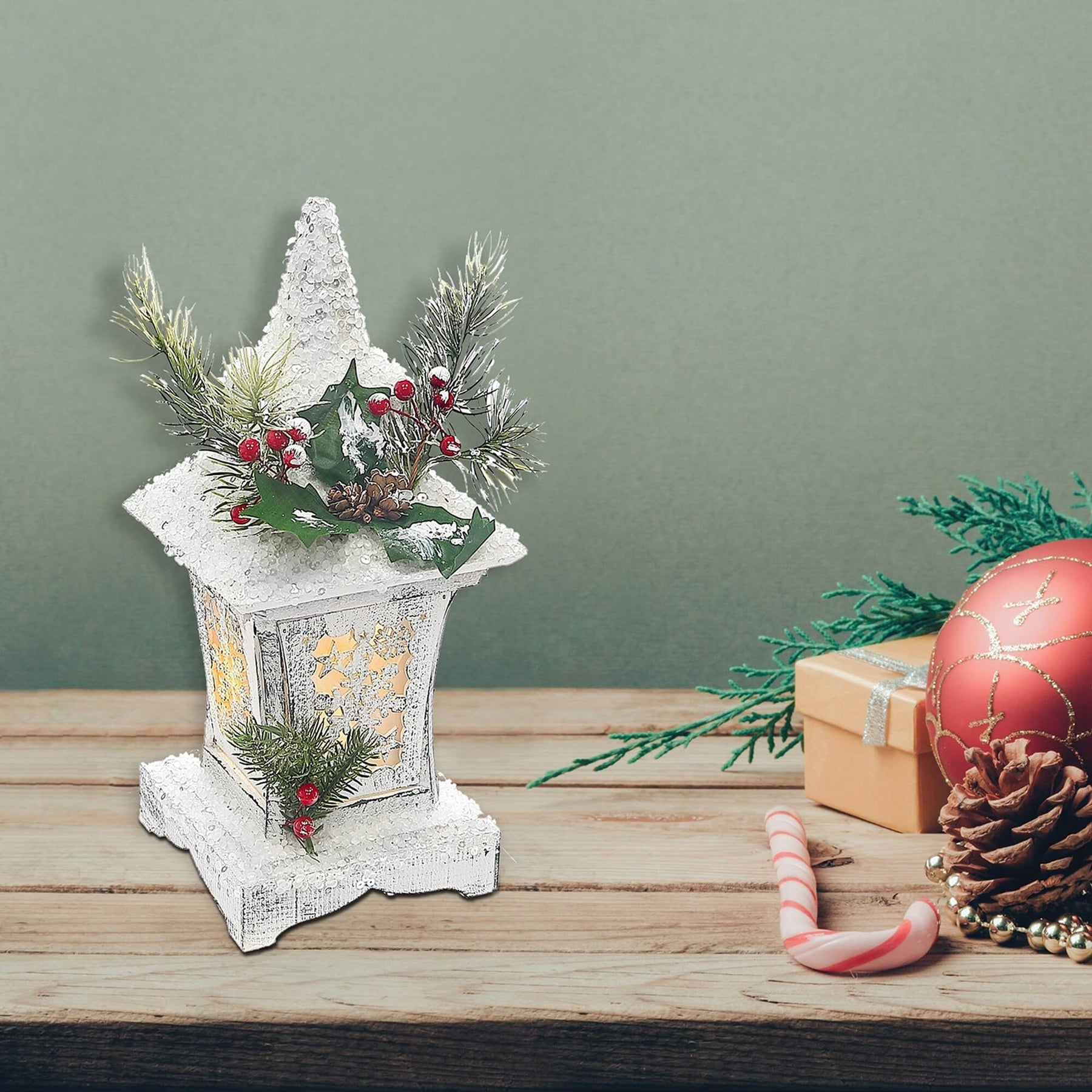 Christmas Led Snow Covered Snowflake Lantern 13.4" White Wood