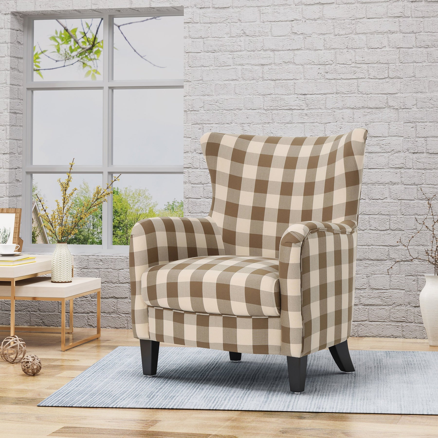 Christopher Knight Home Oliver Farmhouse Armchair Brown Checkerboard Dark Brown