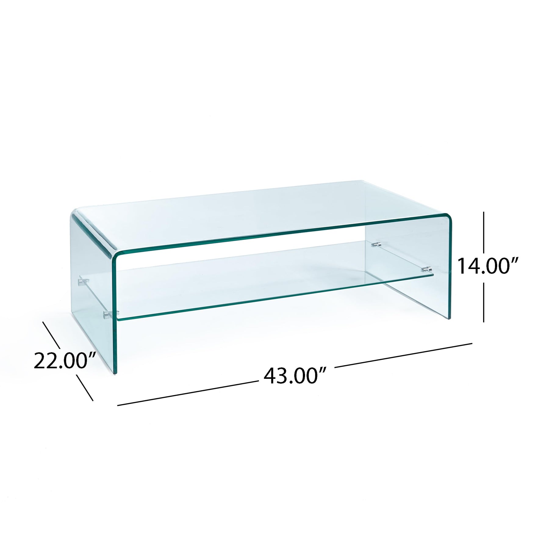 Christopher Knight Home Ramona Glass Coffee Table with Shelf Transparent