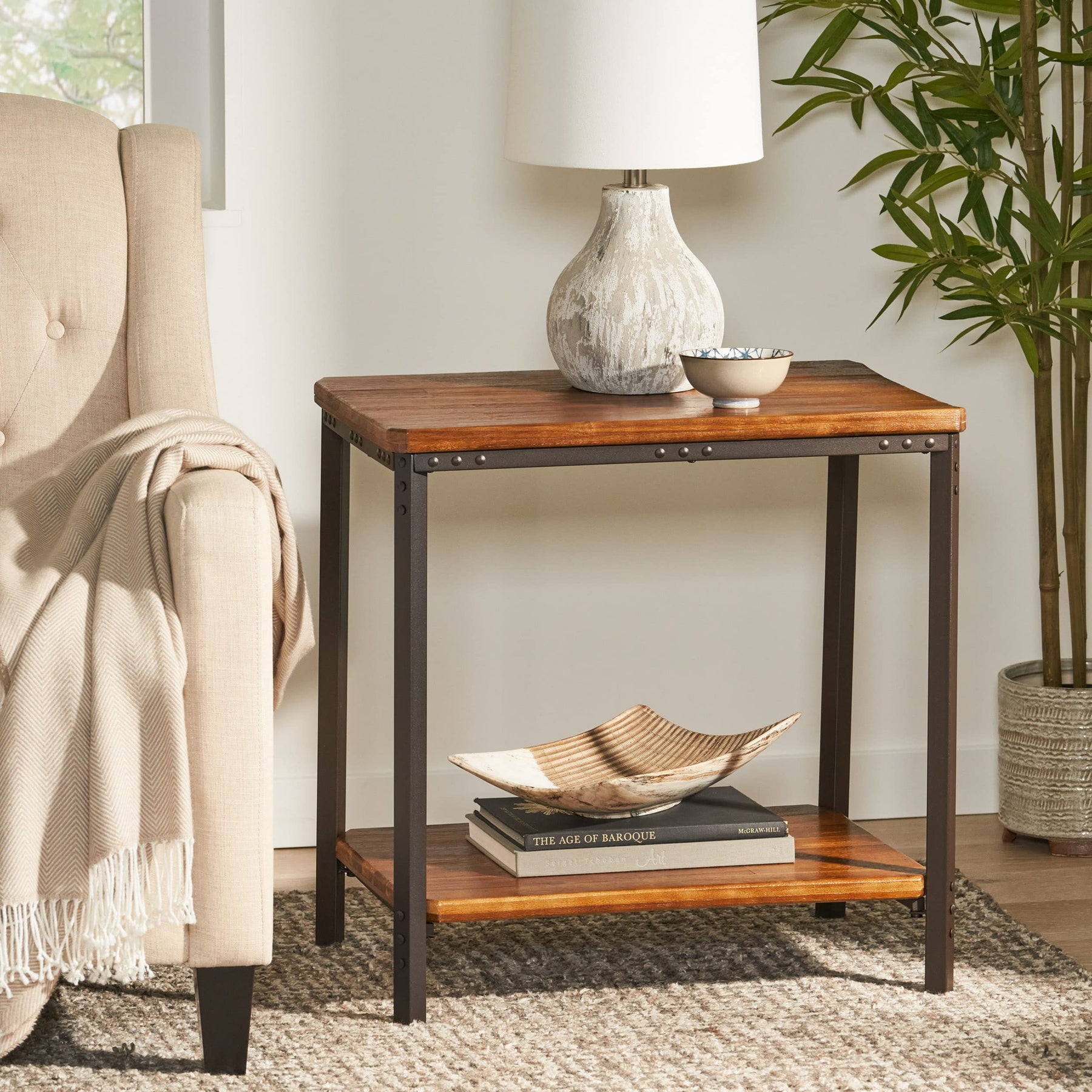Christopher Knight Home Ronan Wood Rustic Metal End Table Mahogany