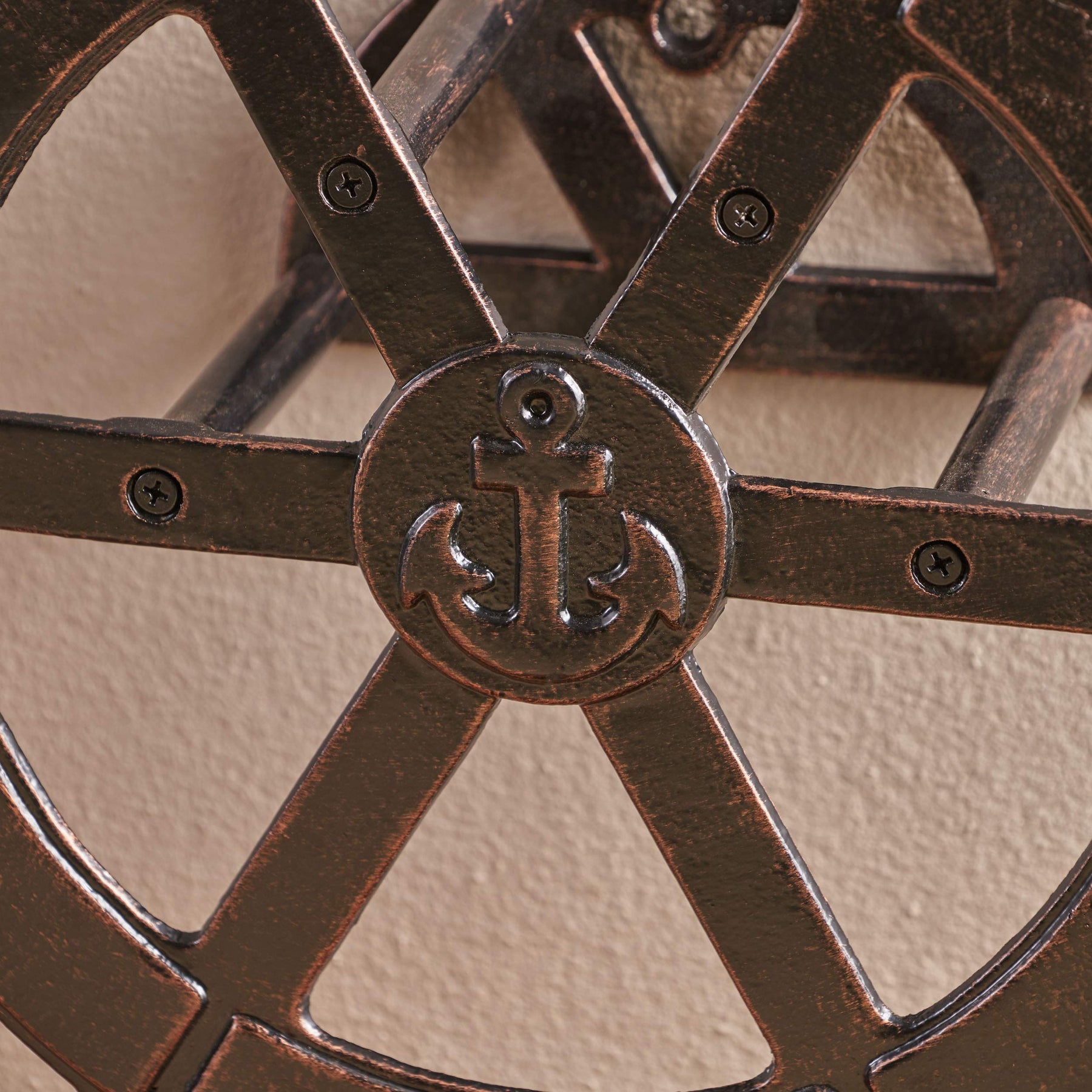 Christopher Knight Home Vanora Outdoor Shiny Copper Aluminum Ship Wheel Hose